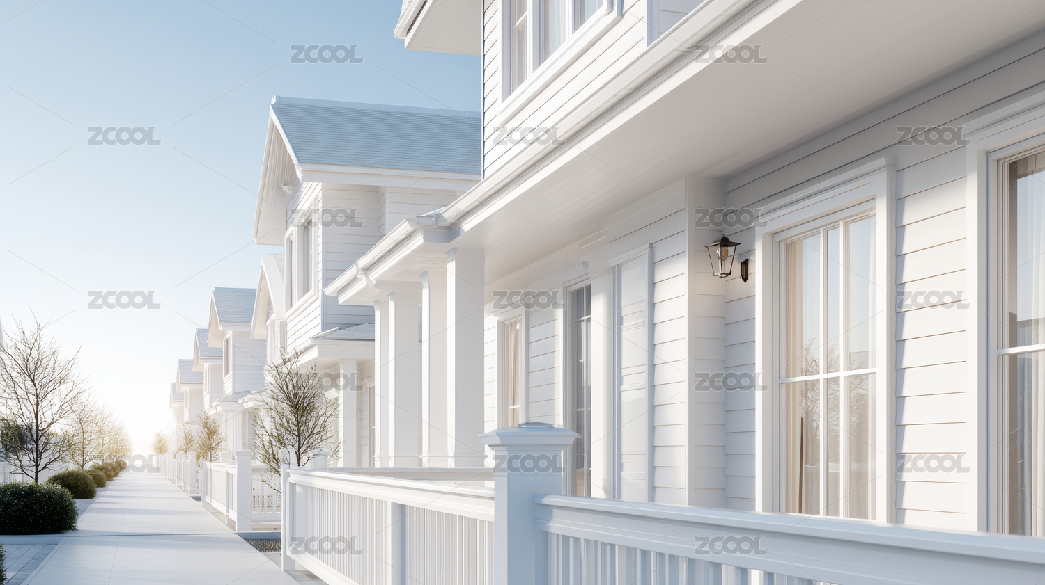 静谧的白色房屋街景