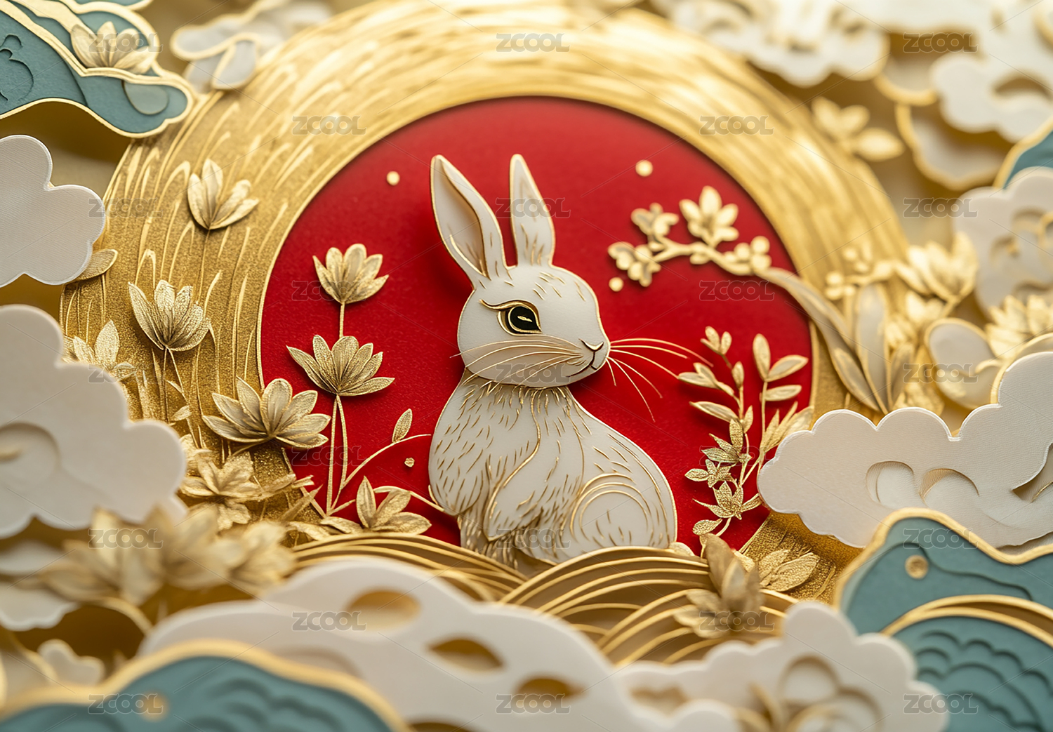中秋祥云桂花玉兔3D