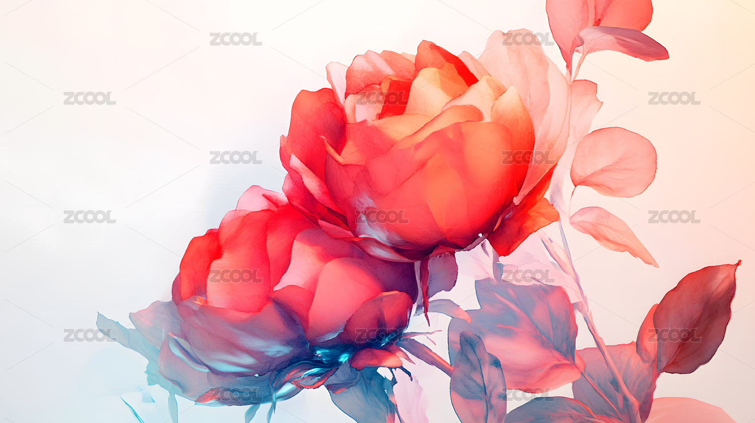 水彩晕染的绯红玫瑰