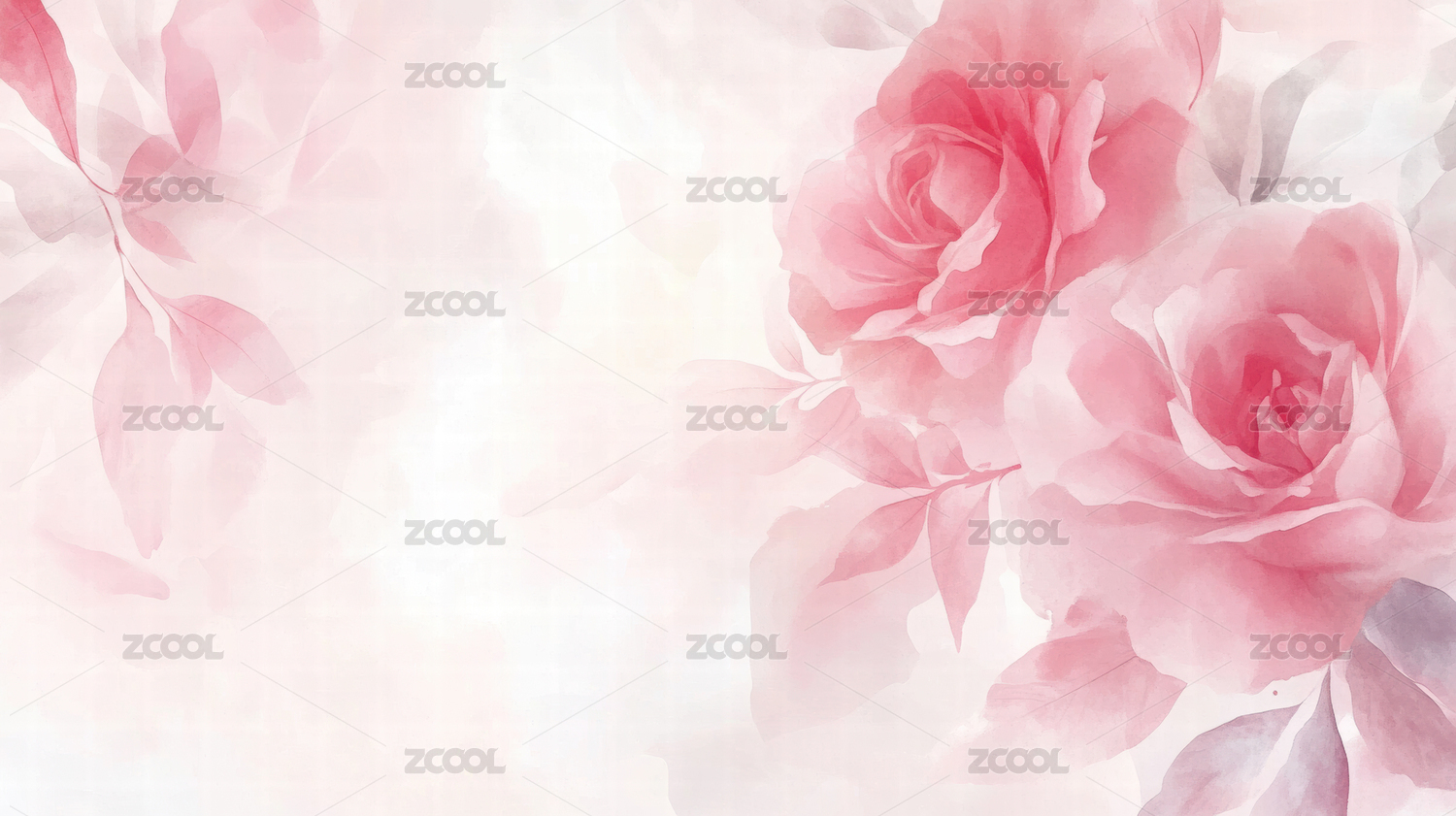 梦幻粉红玫瑰水彩画