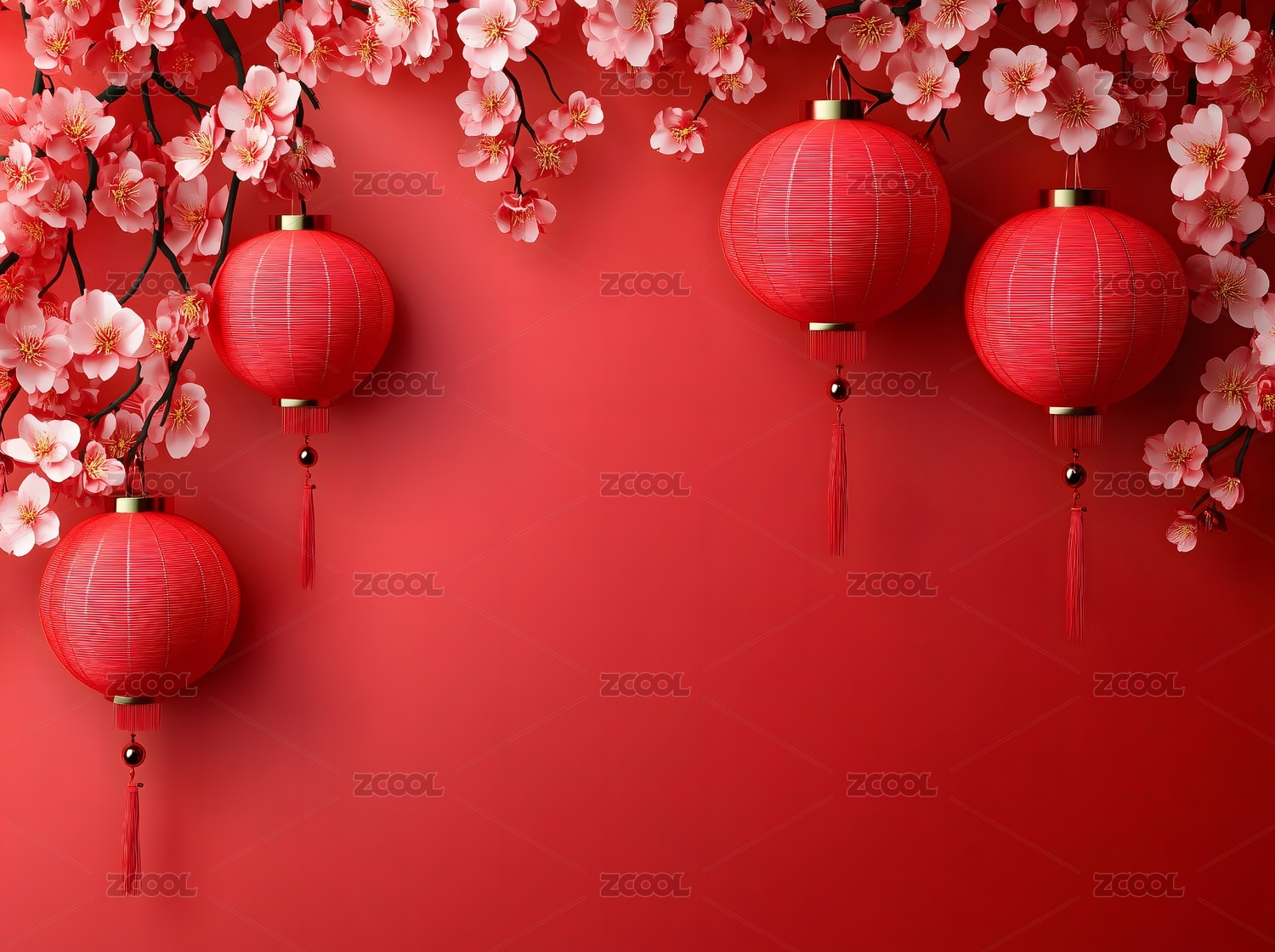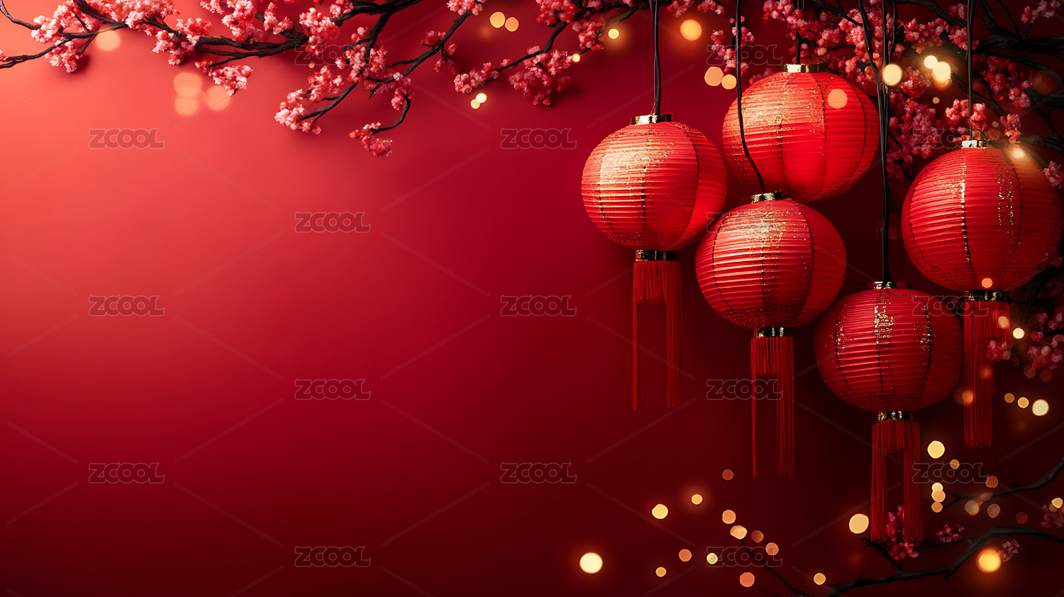 红色,东方,树枝,传统,节日,喜庆,装饰,背景,新年,文化