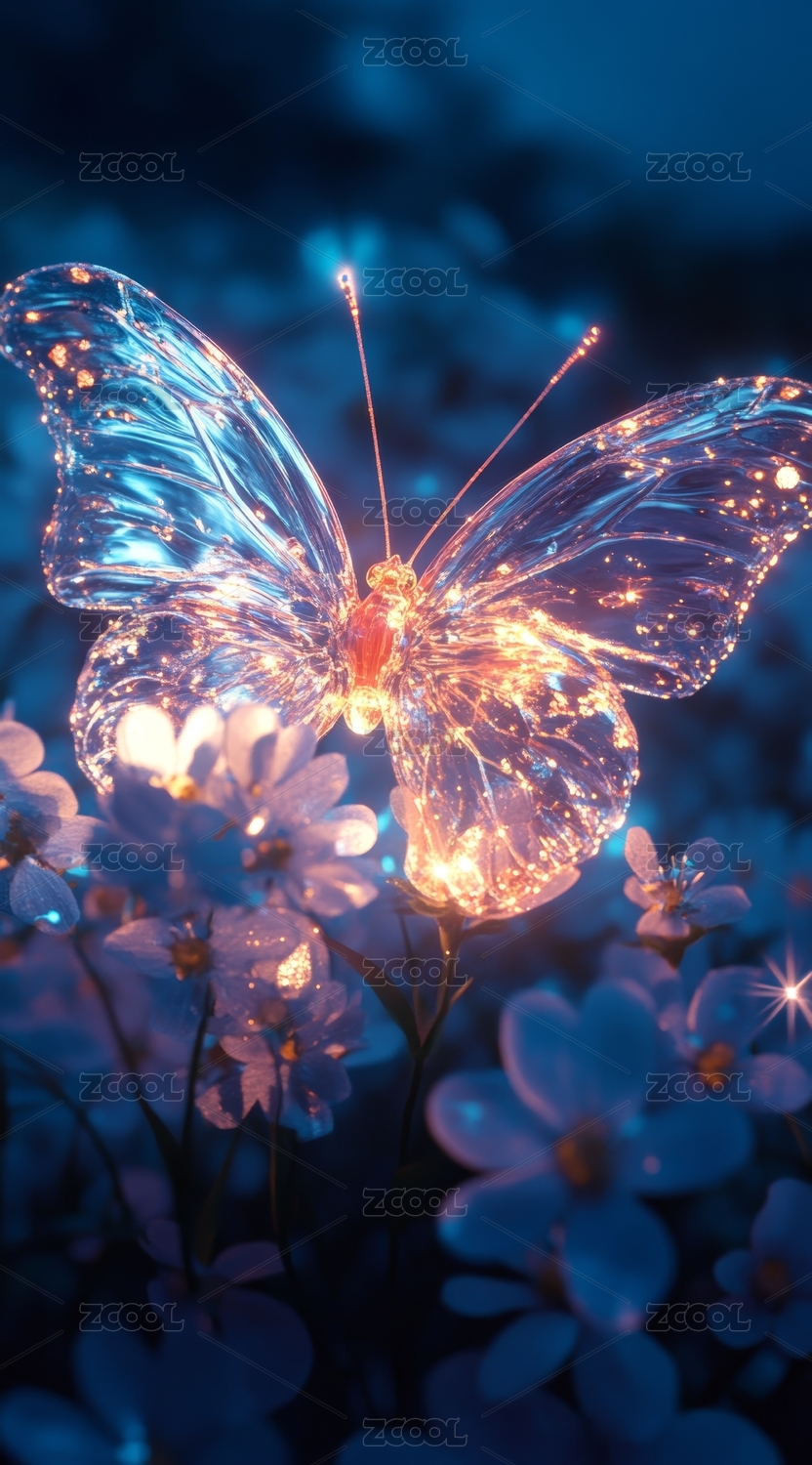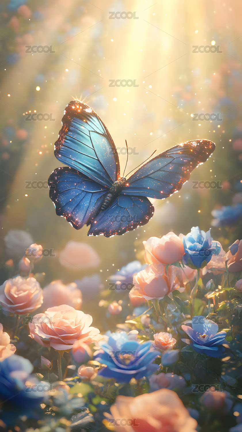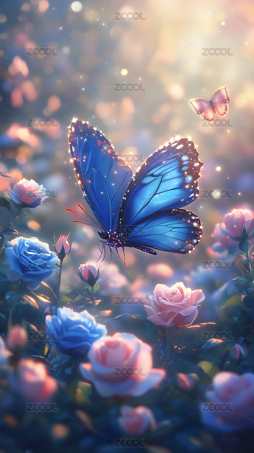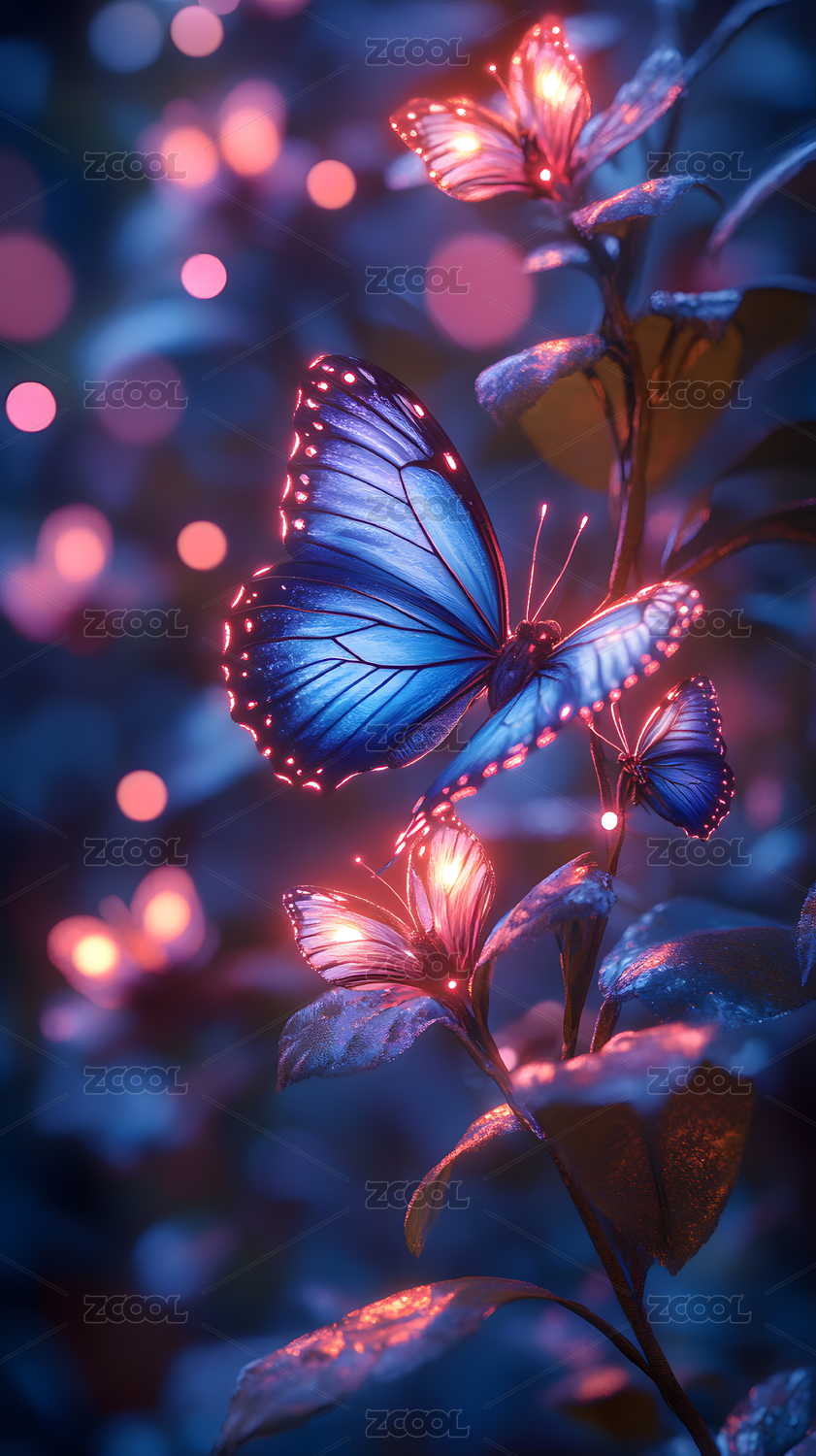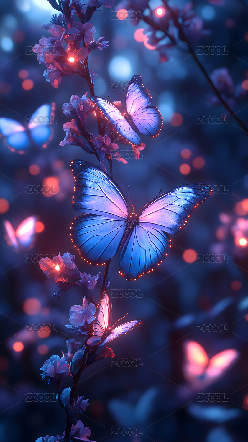 紫境蓝光,群蝶蹁跹织梦幻 关键词