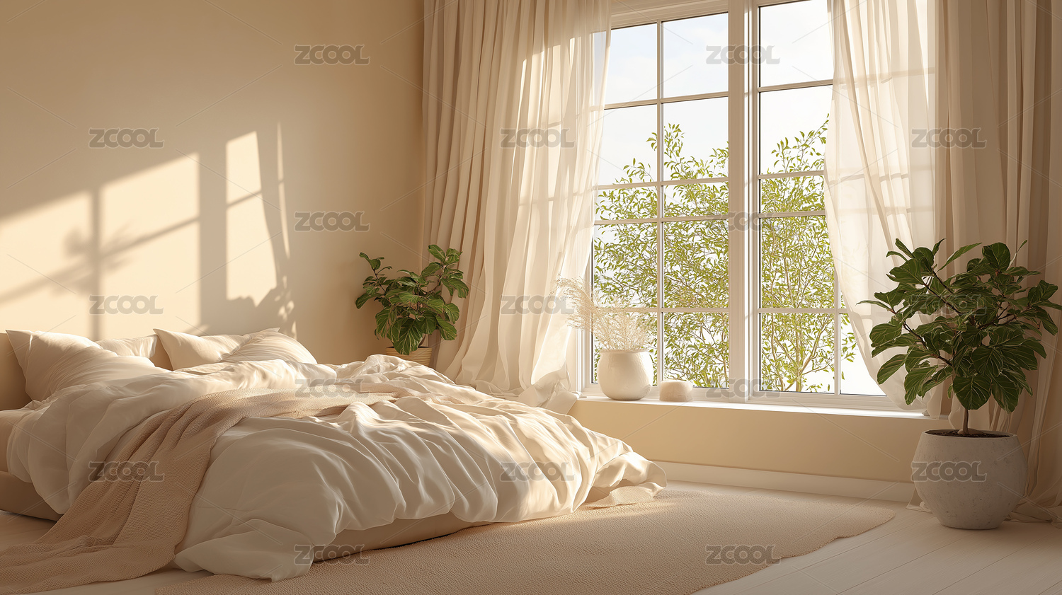 窗户,卧室,家具,室内,设计,住宅房间,住宅内部,装饰物,AI数字艺术,生活方式