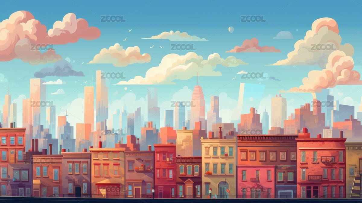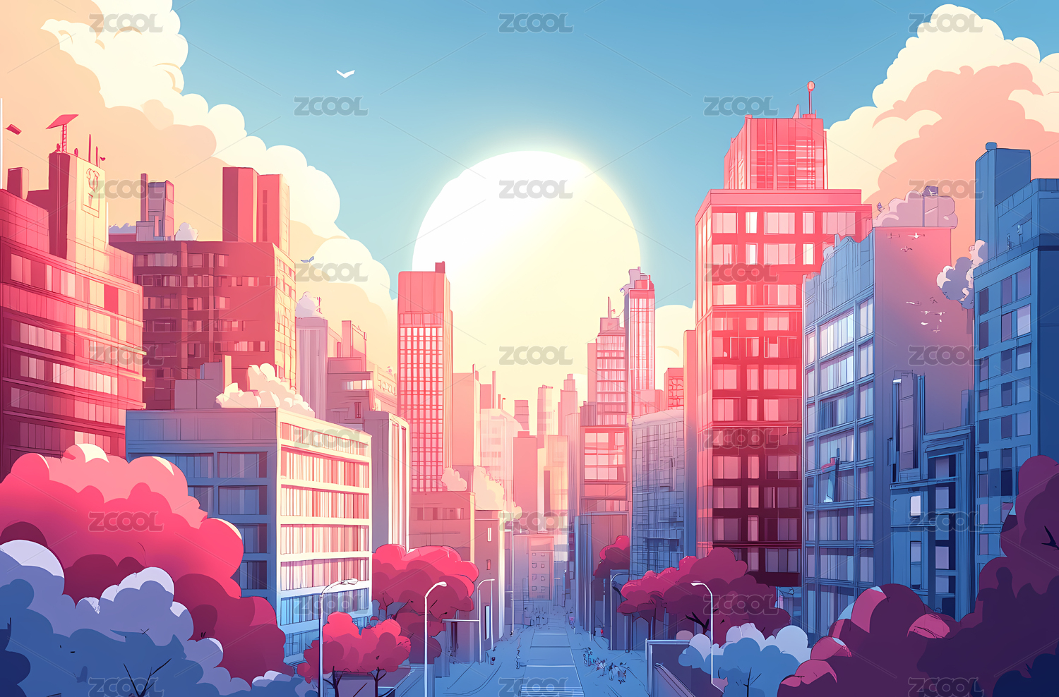 高楼,街景,建筑,卡通,背景图,风景,城市