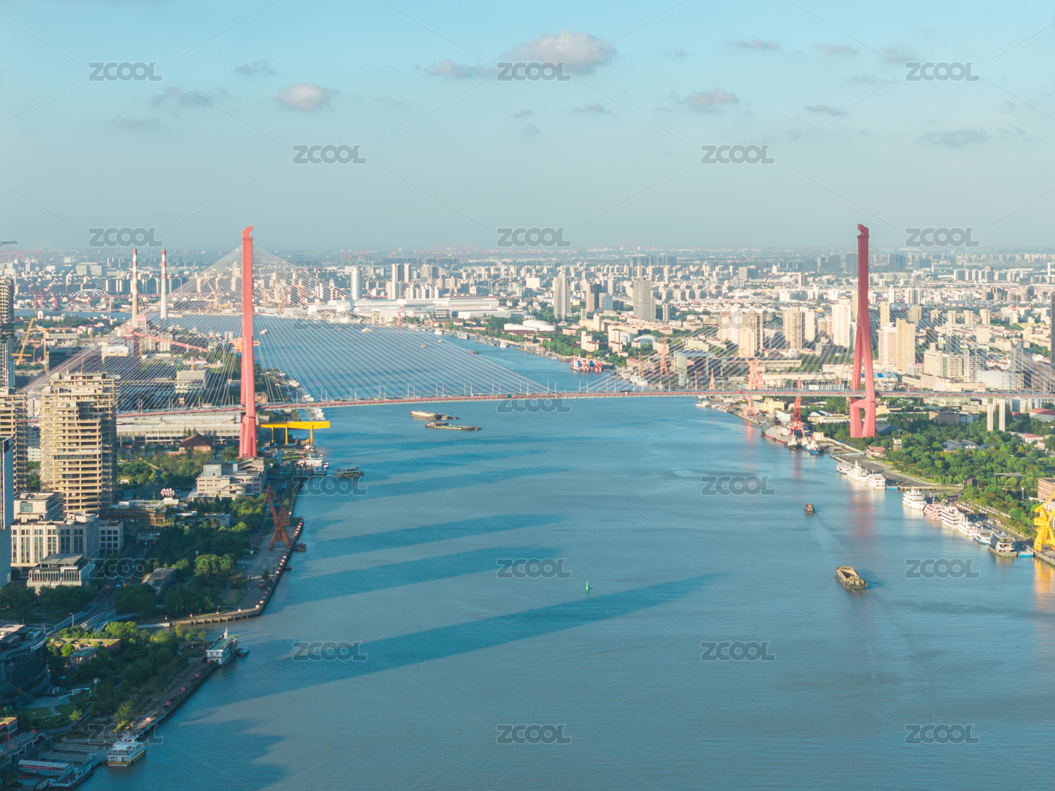俯瞰中国上海市徐浦大桥横跨黄浦江两岸