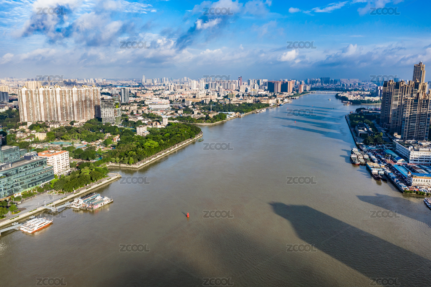 中国广州城市风光,珠江白鹅潭,芳村码头的清晨
