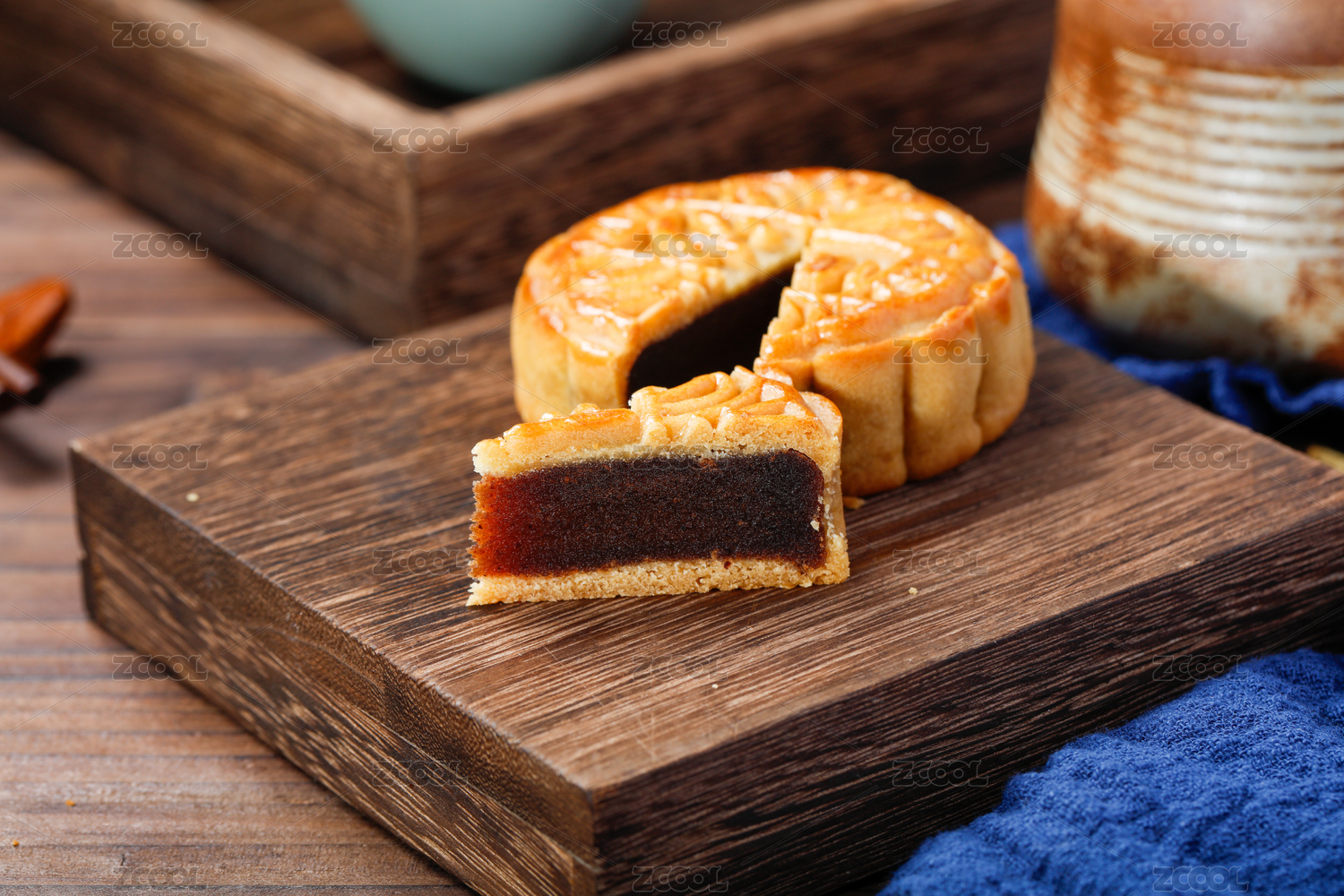 木板上的传统美食月饼