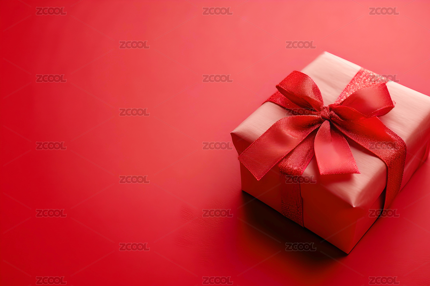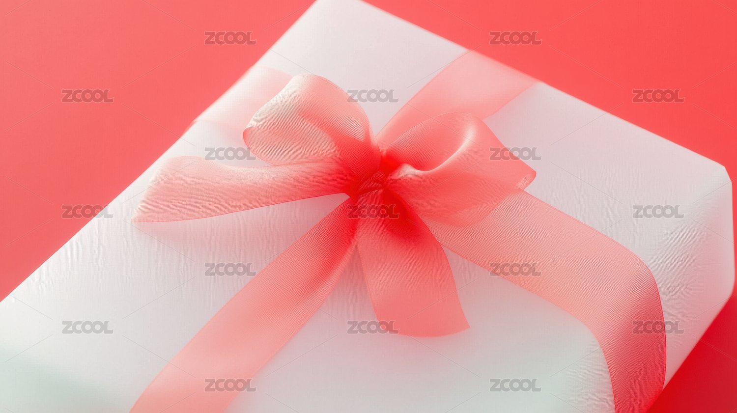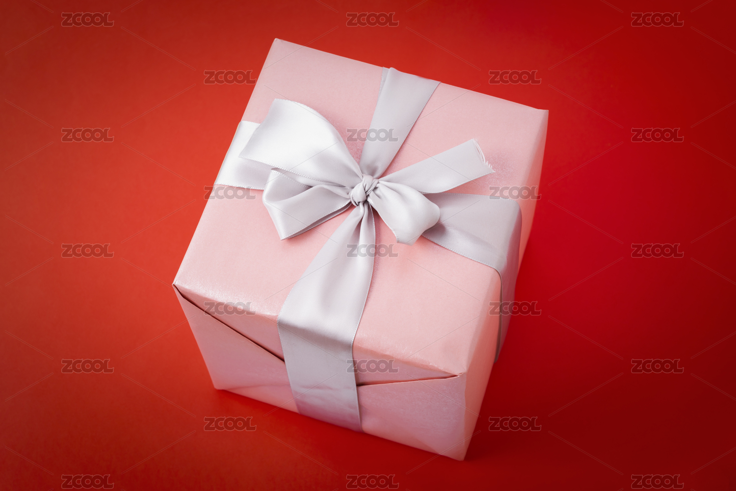一个粉色礼盒带着蝴蝶结在红色背景上