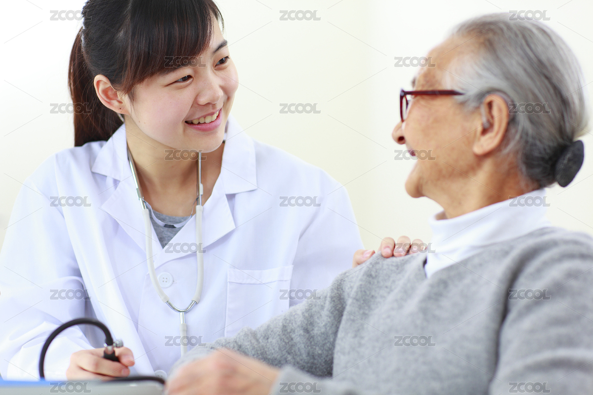年轻的亚洲女医生做医疗健康体检,以资深的中国人