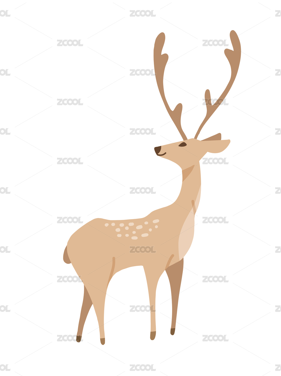 可爱的卡通鹿有着硕大的鹿角