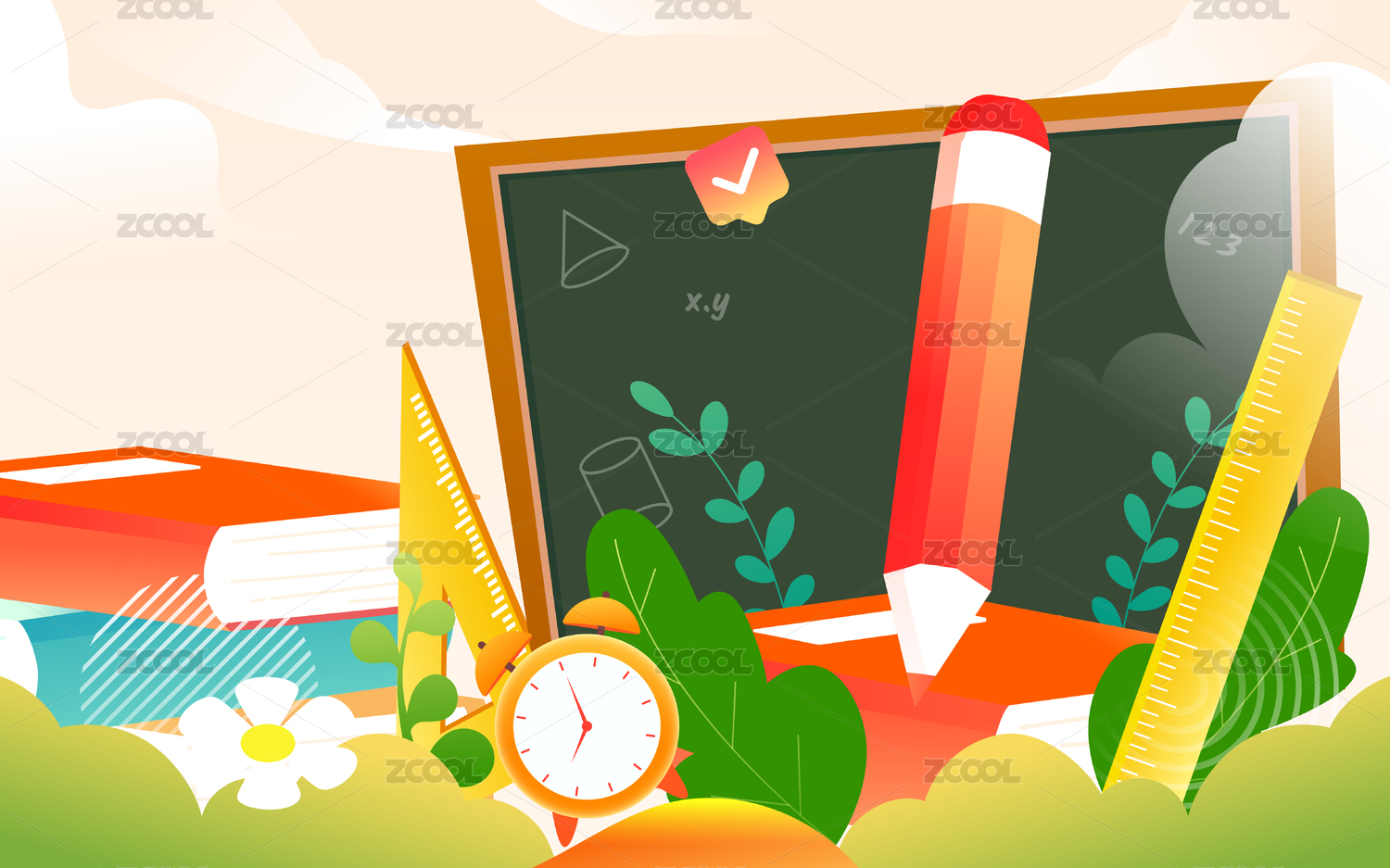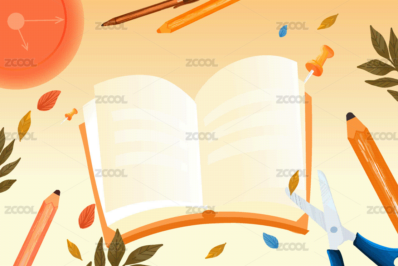 卡通手绘教育书籍文具场景插画