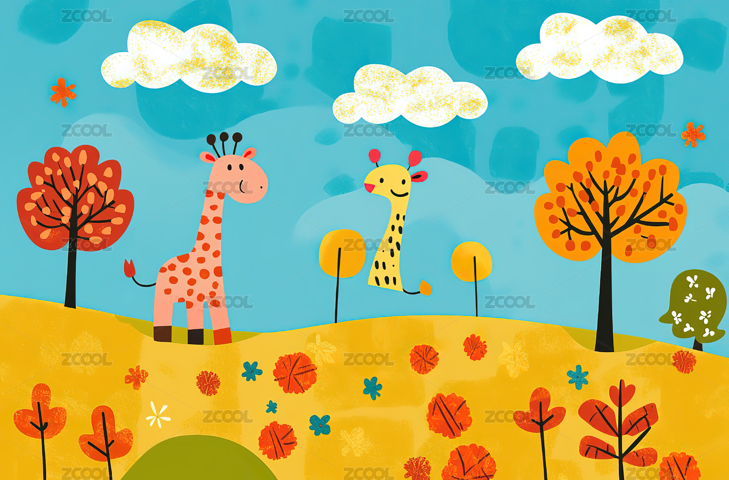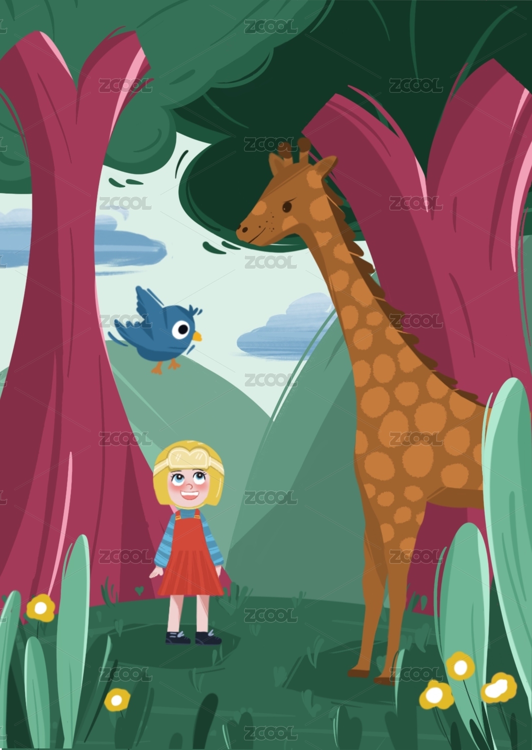 儿童插画长颈鹿