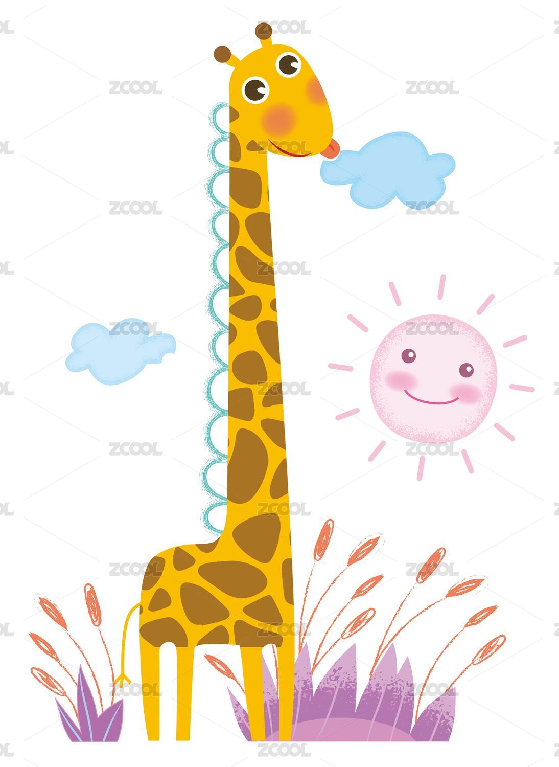 卡通长颈鹿插画可爱动物设计素材