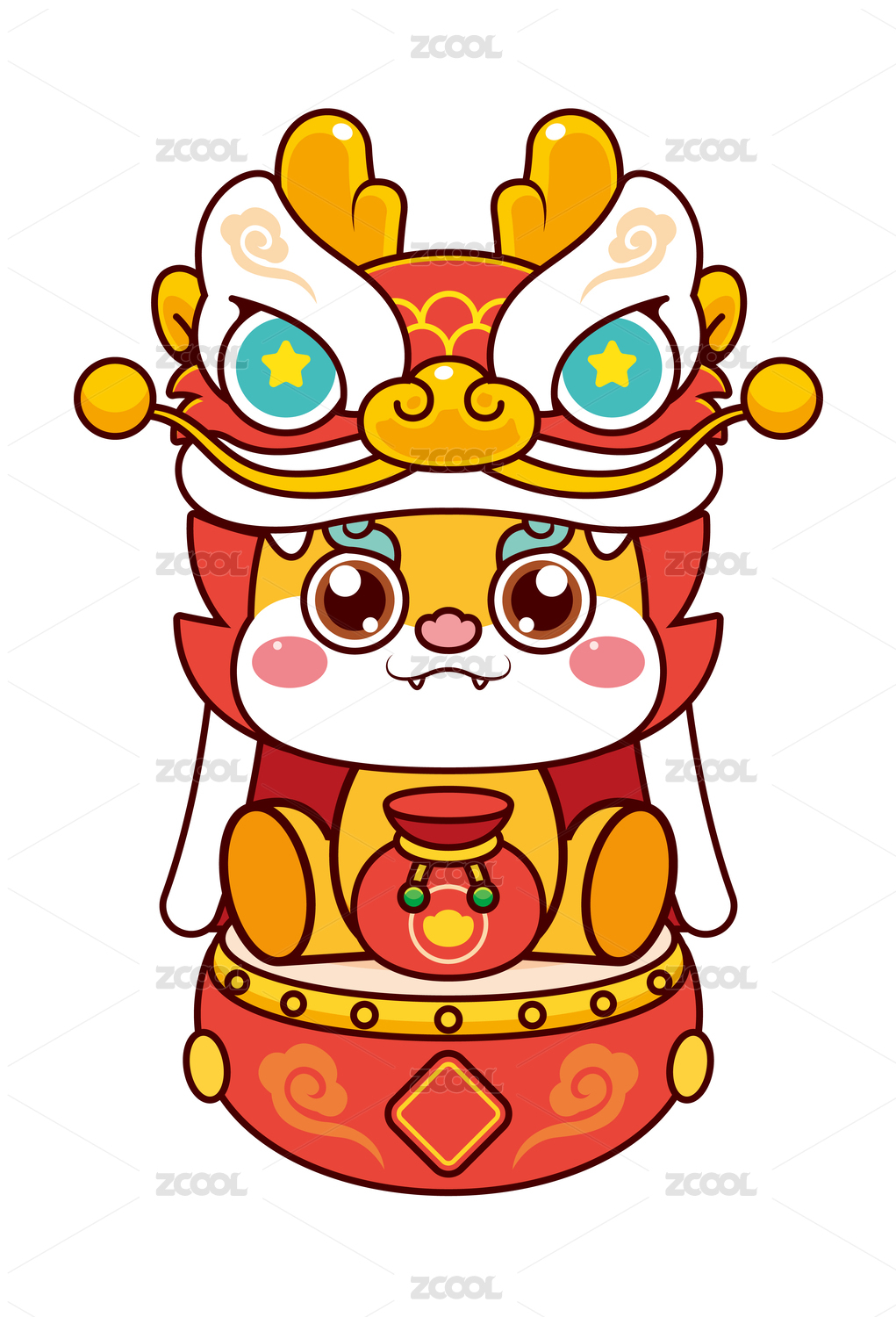 抱着元宝的可爱小龙 国潮风格矢量插画