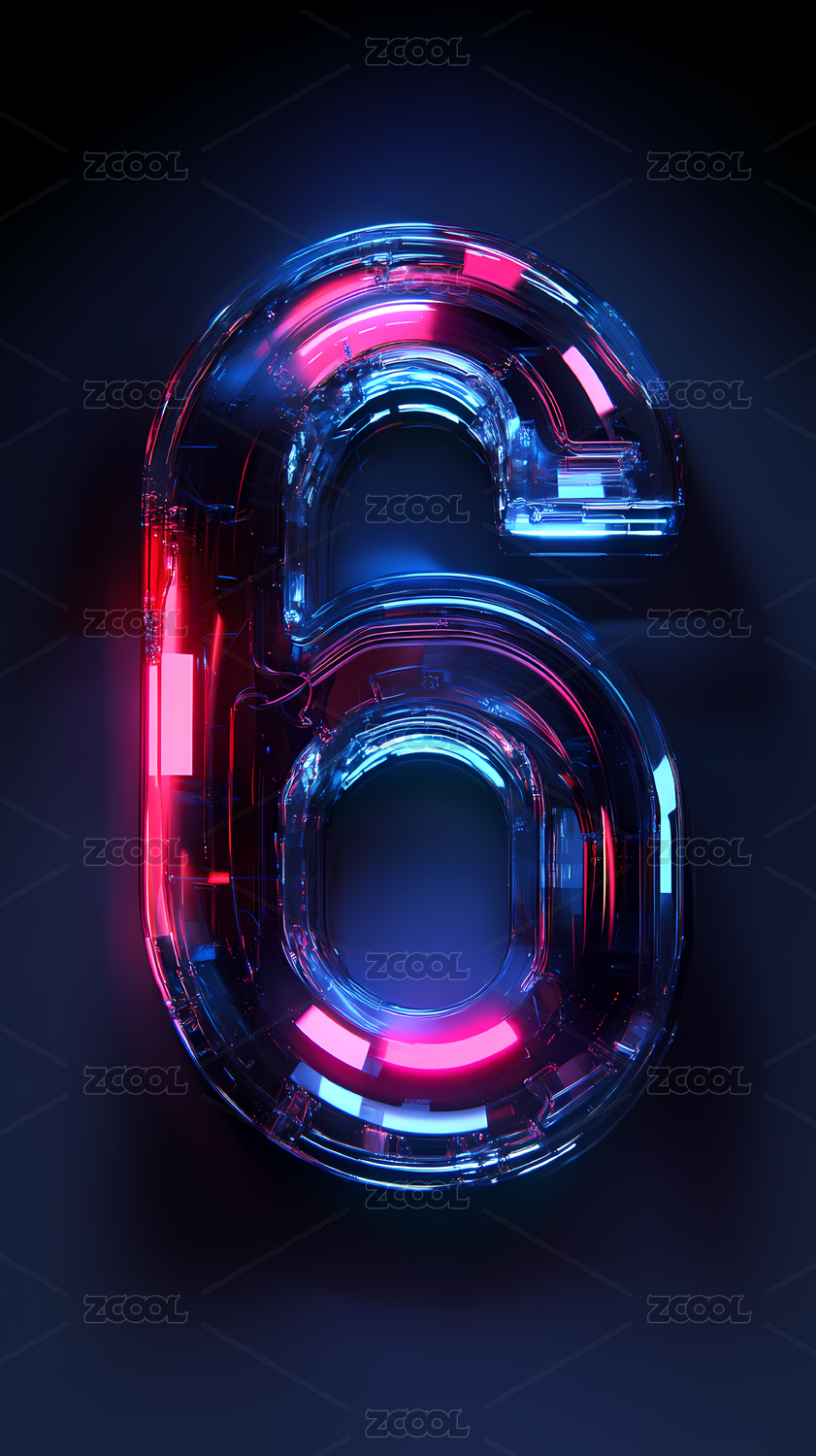 三维立体霓虹数字6