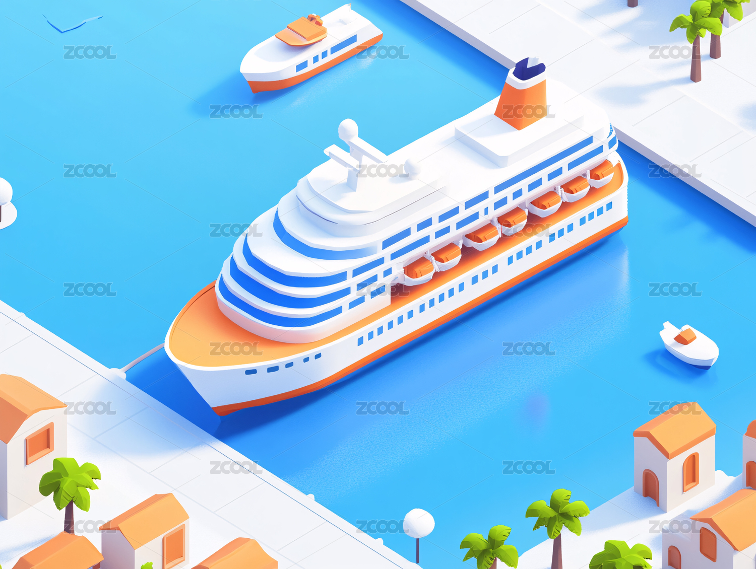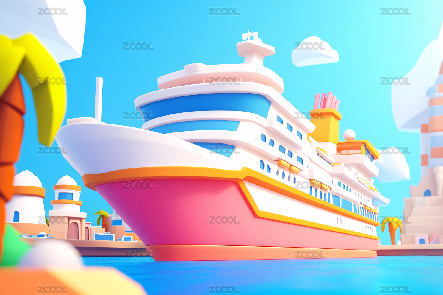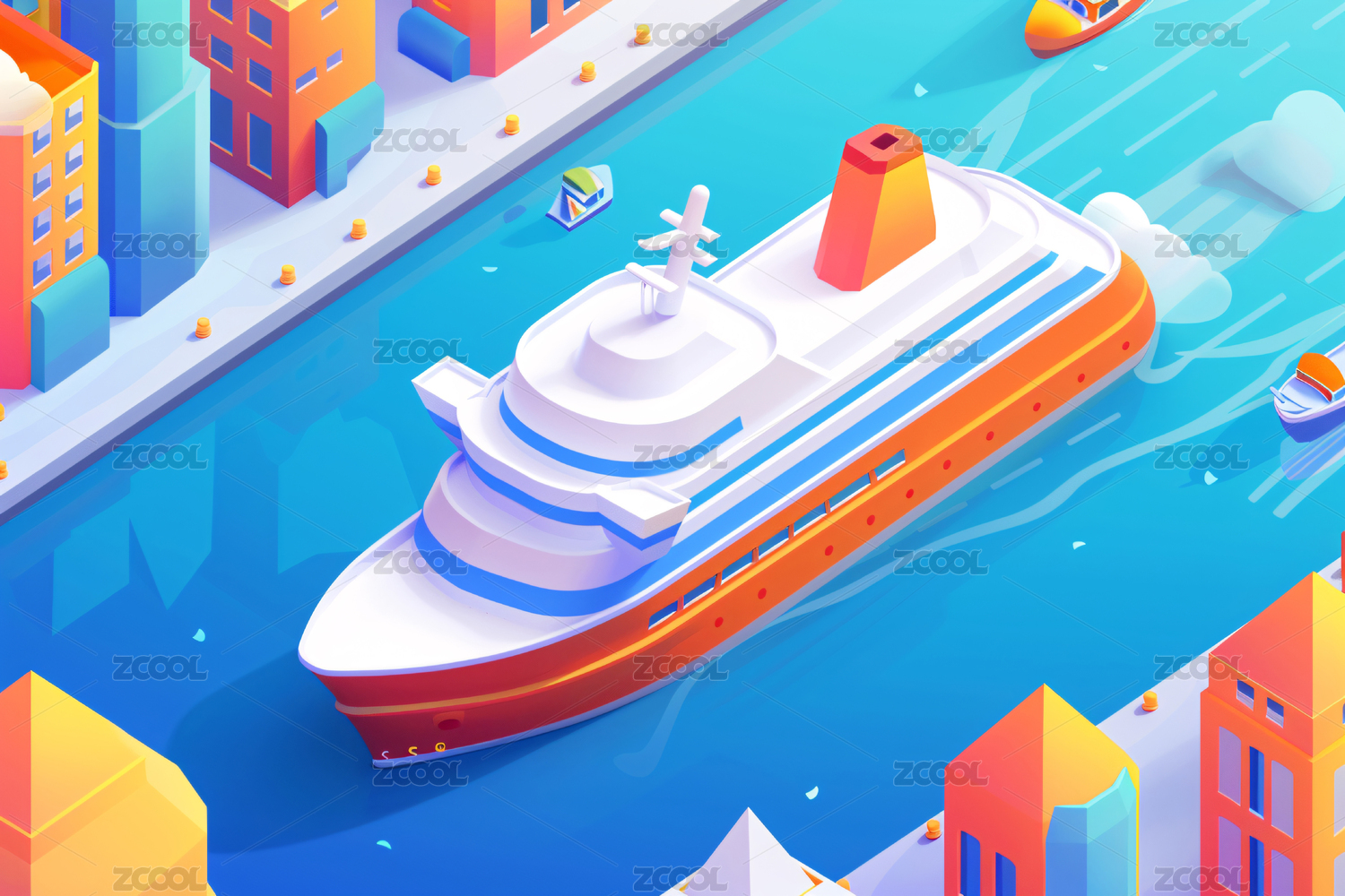 国庆假日出发旅游卡通豪华轮船交通运输插画