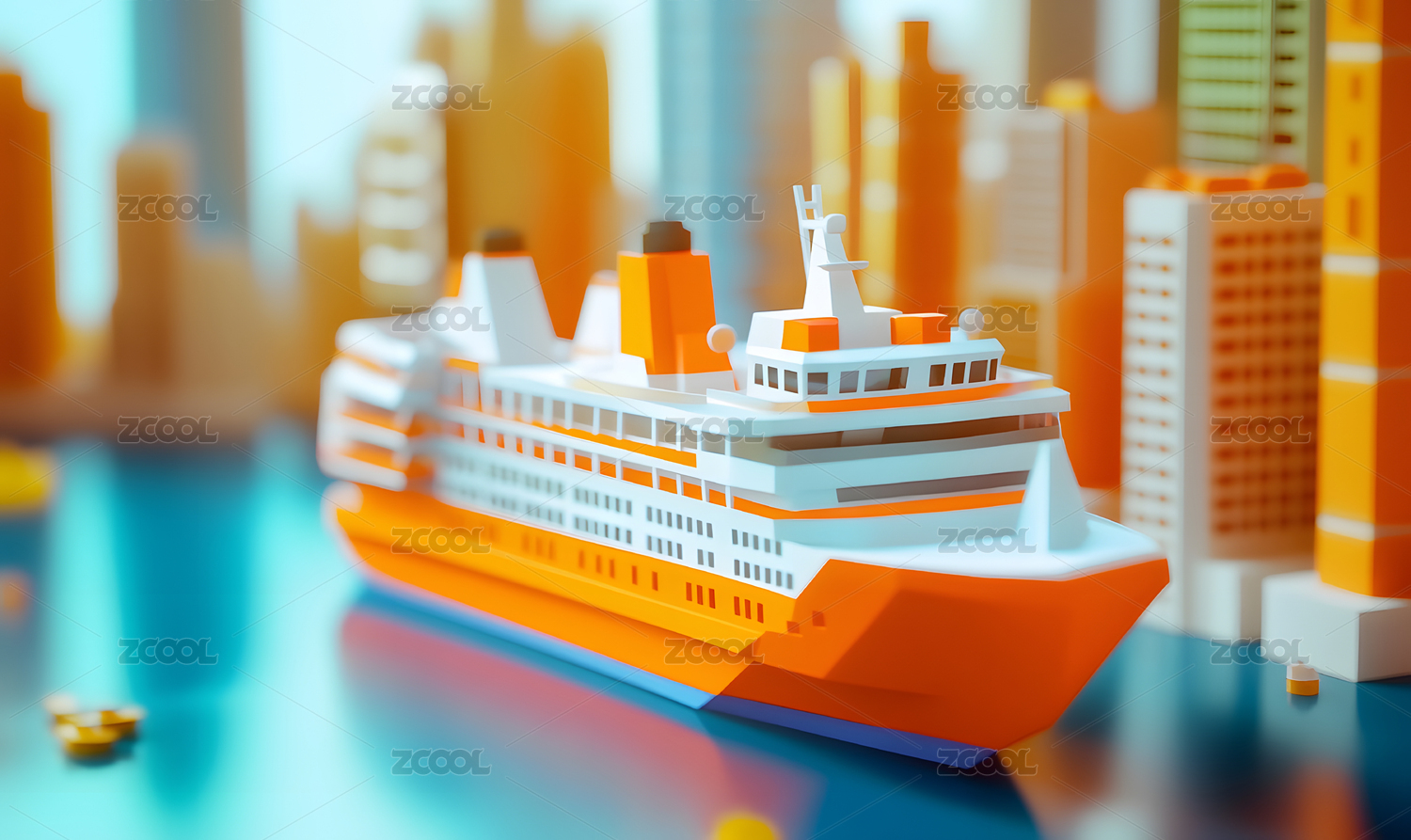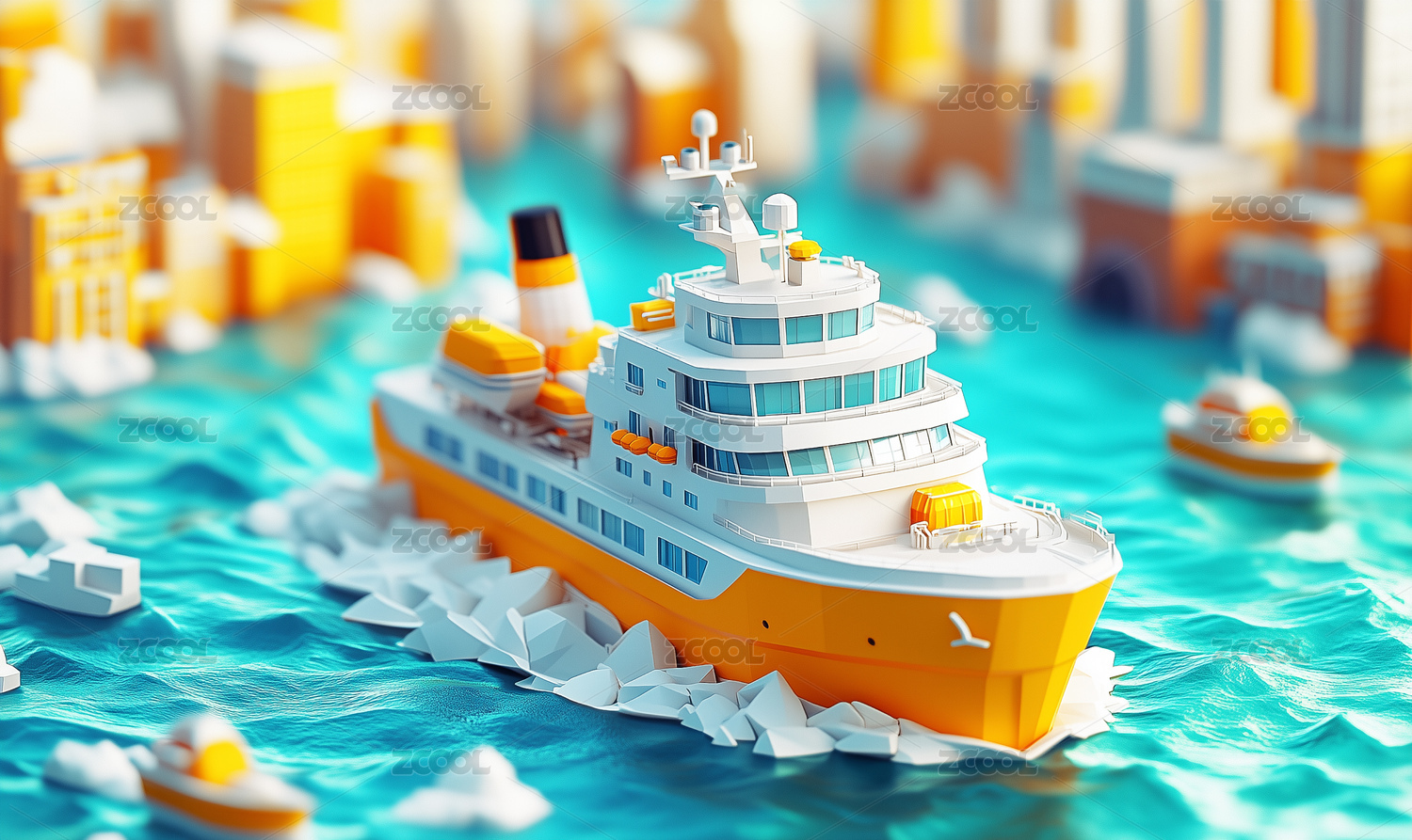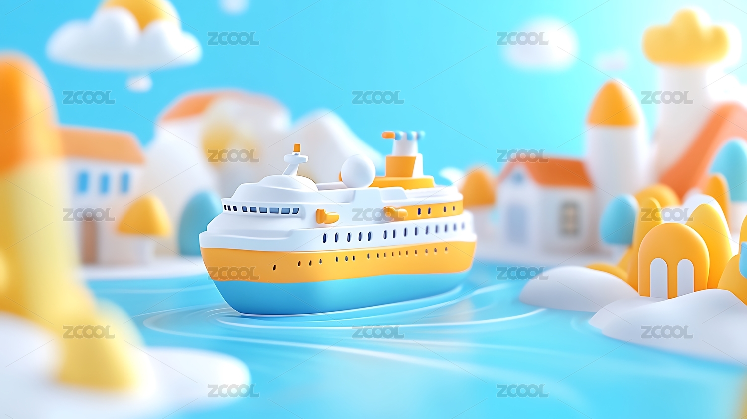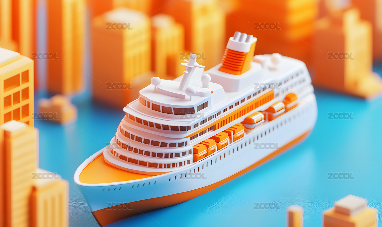 国庆假日出发旅游卡通豪华轮船交通运输插画