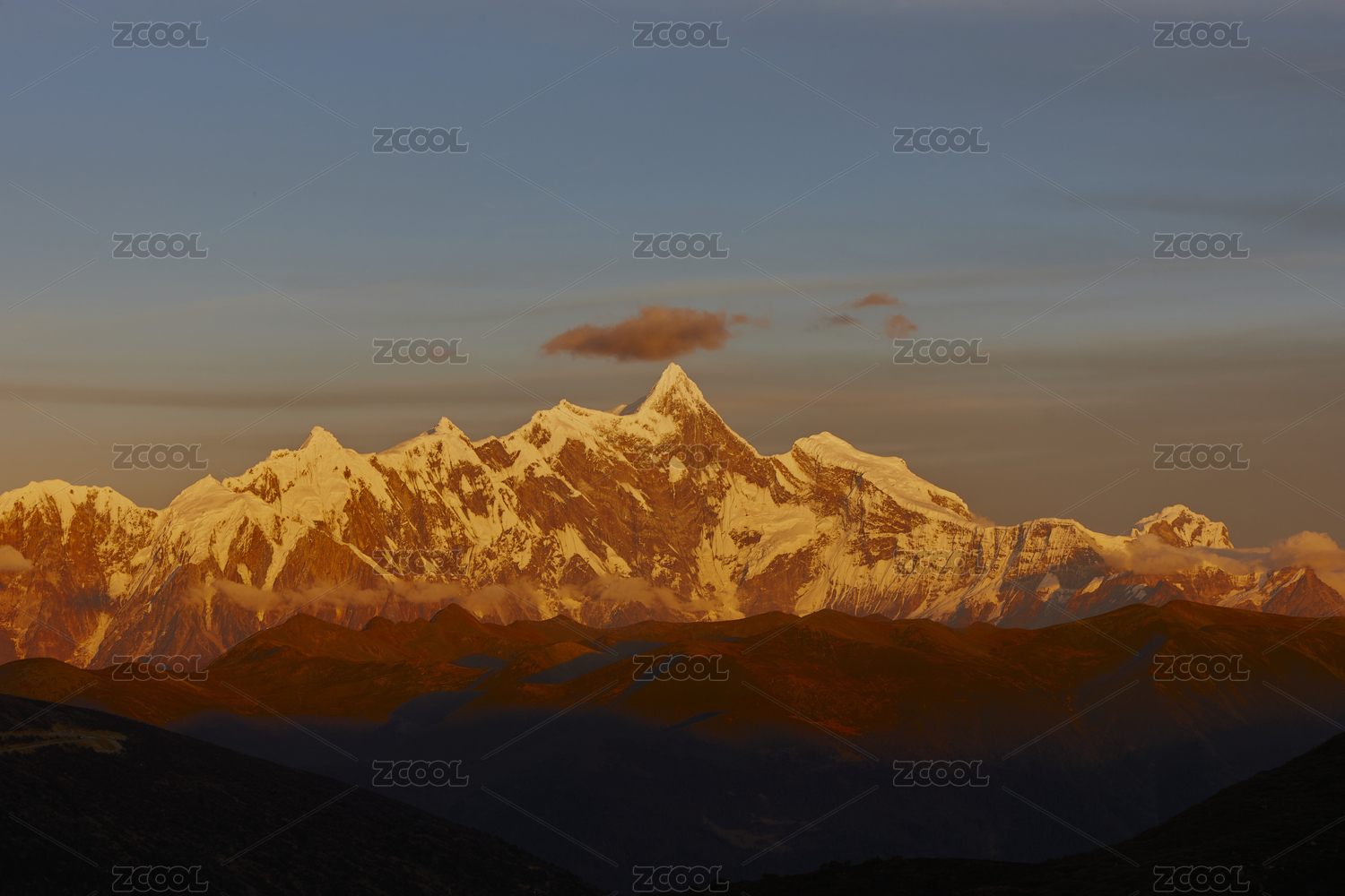 四川蜀山之王贡嘎山的傍晚