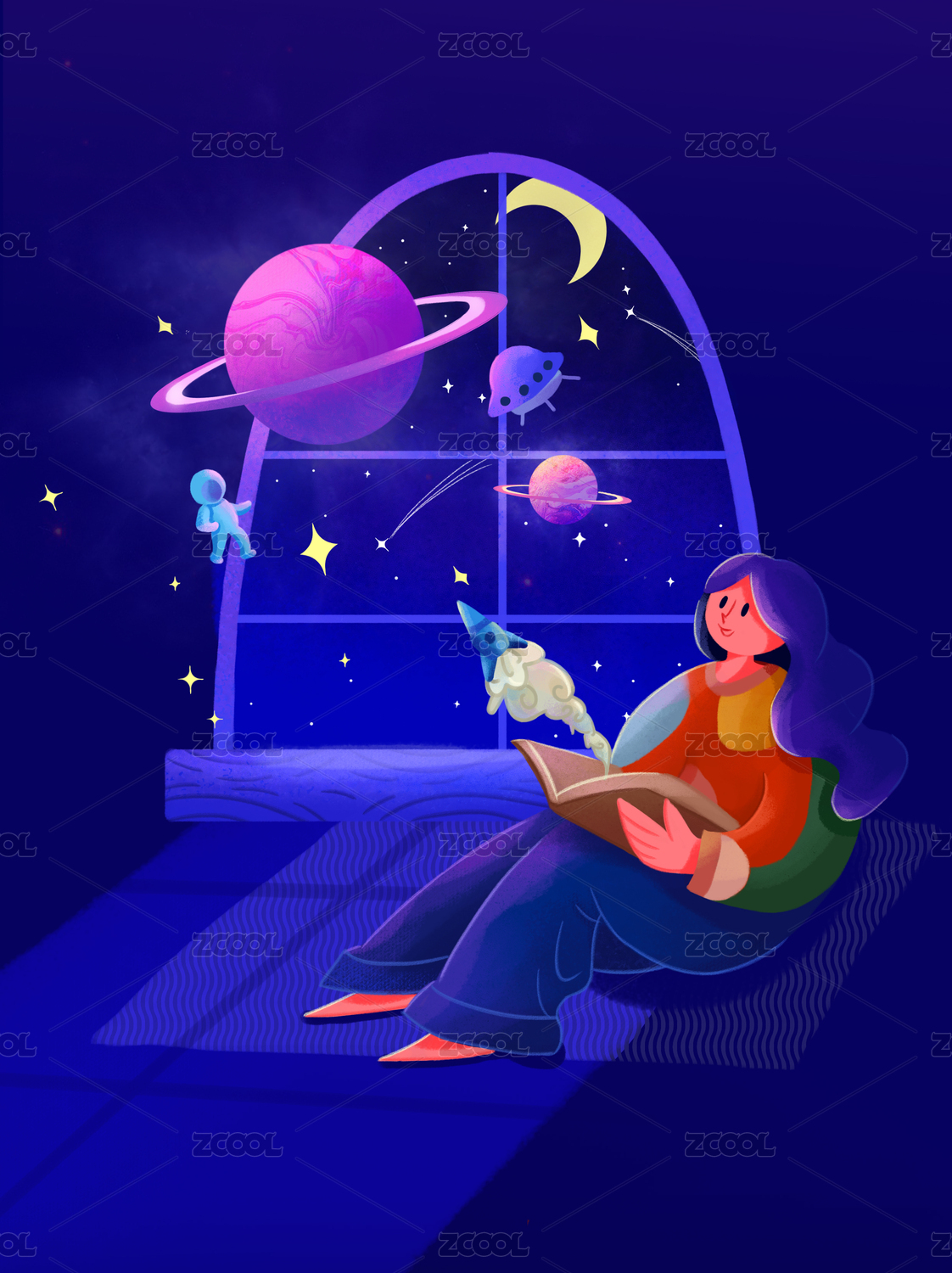 梦想,宇航员,男孩,看书,星球,儿童,读书