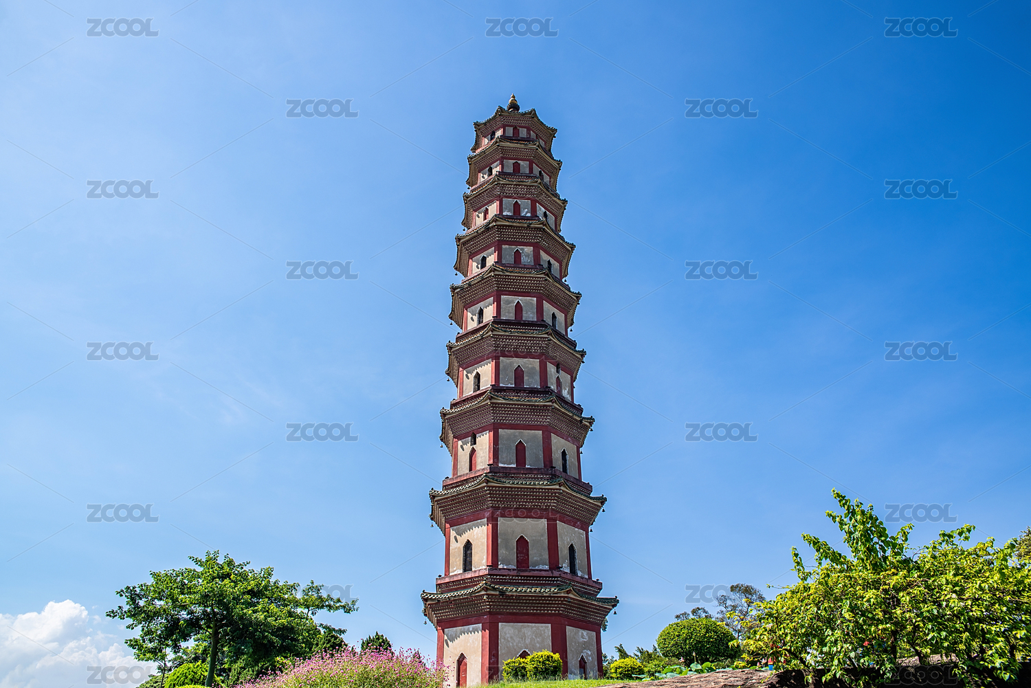 仰拍福建省福州市西禅寺的宝塔报恩塔