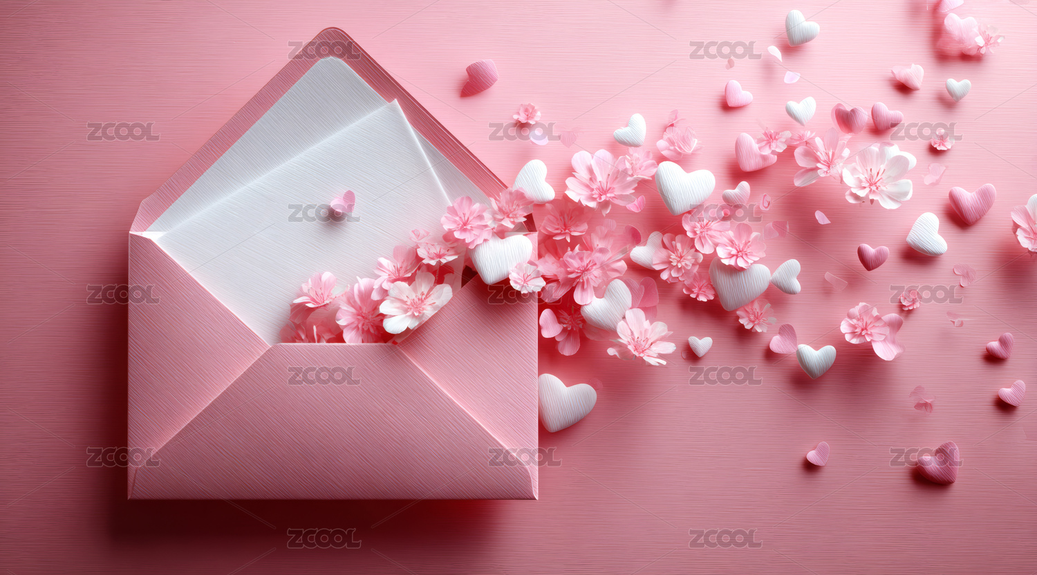 粉色信封里飞出爱心