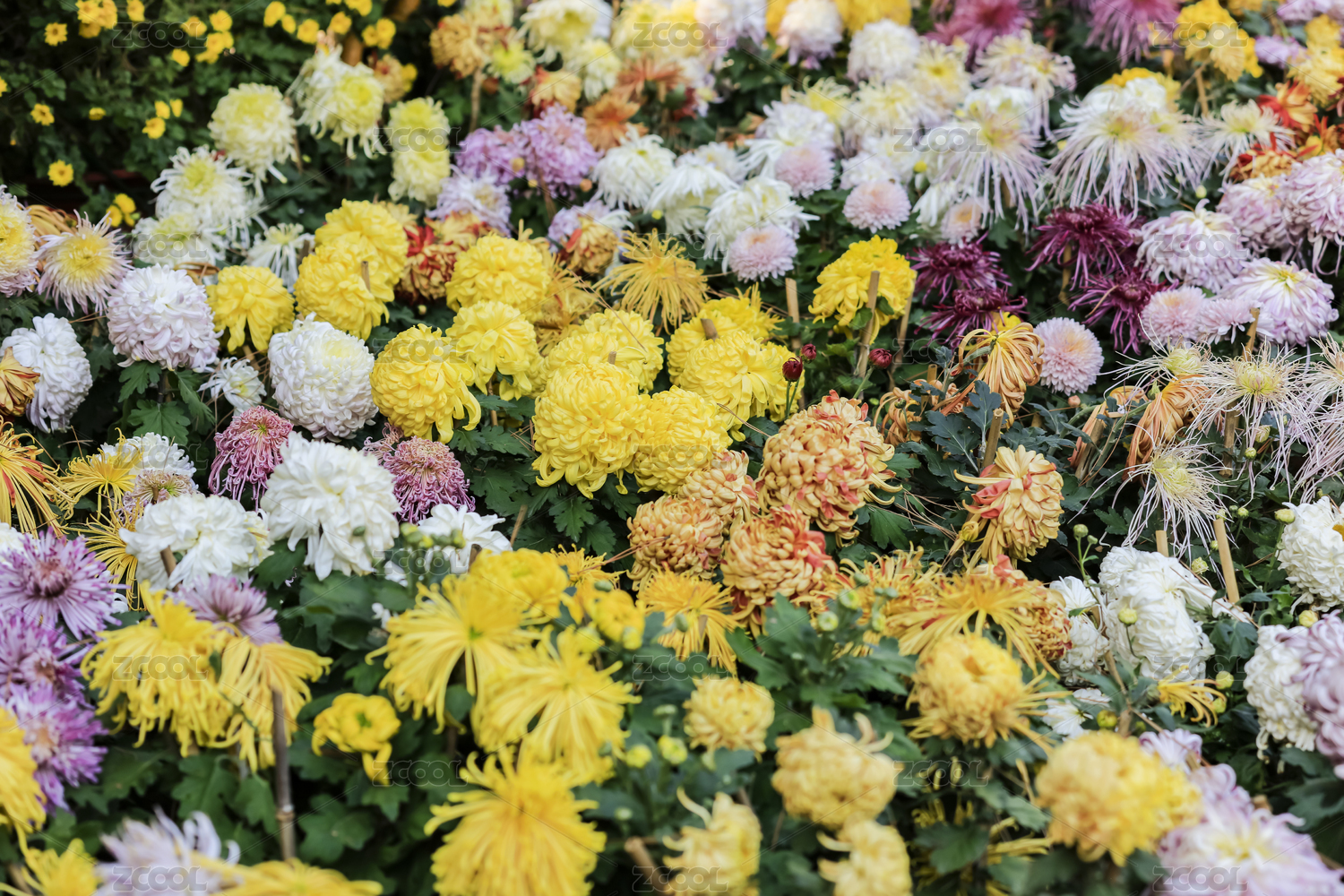 公园里盛开的五颜六色的菊花