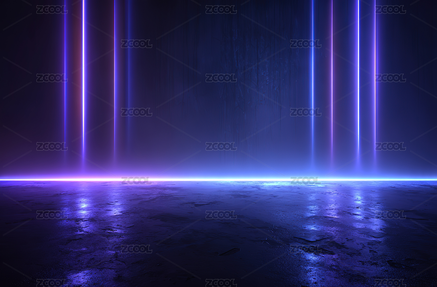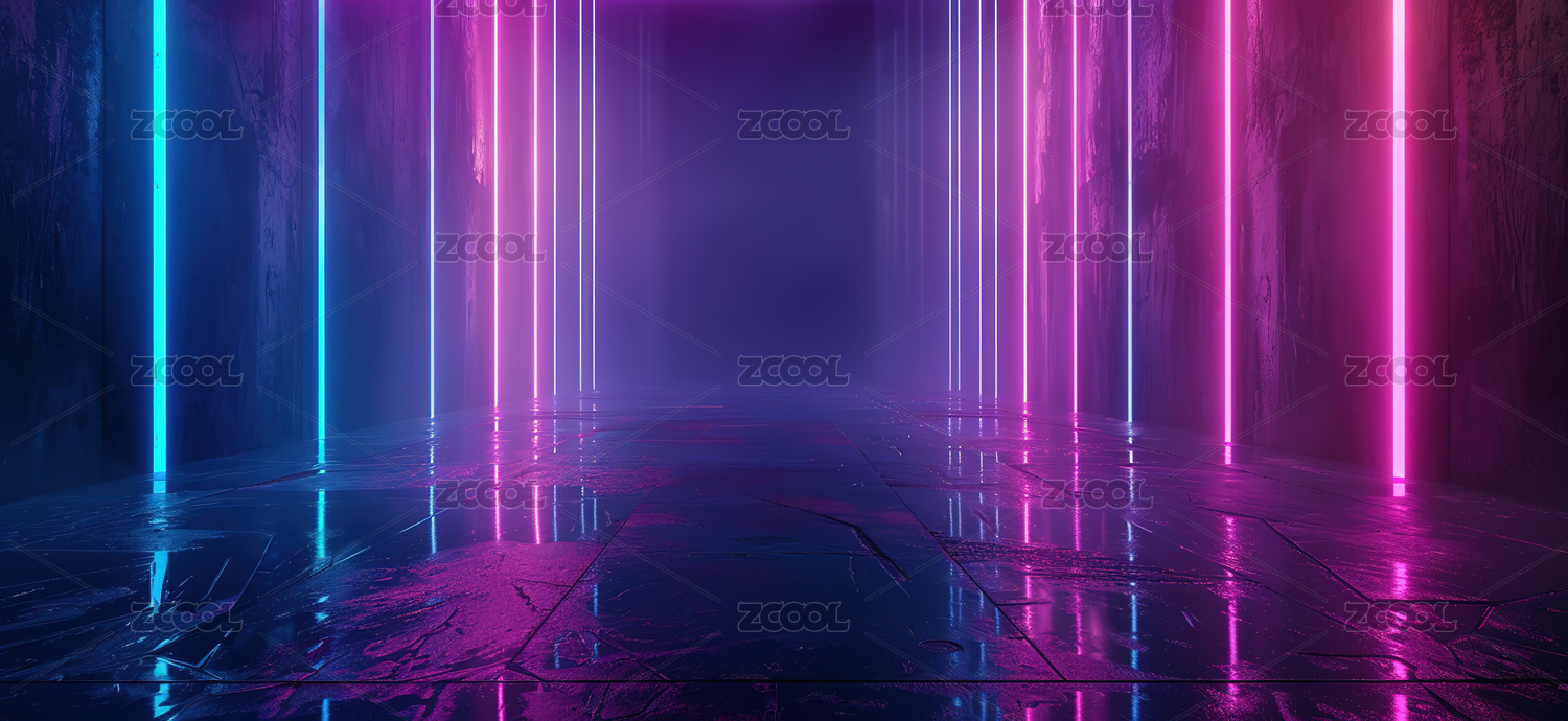 抽象霓虹灯发光几何线条3D渲染商务背景