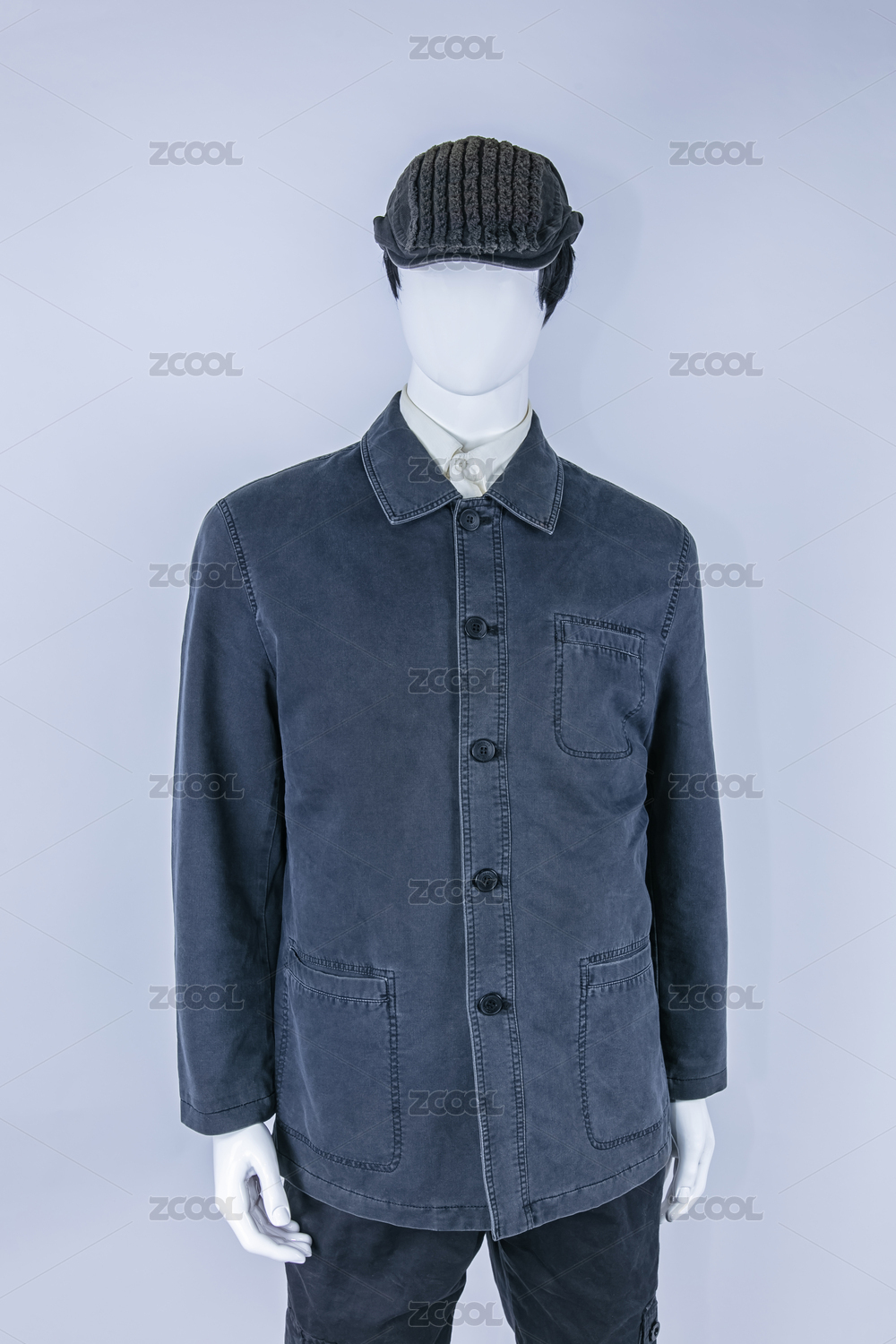 民国风男式蓝色竖条纹长袖衫内衣服饰