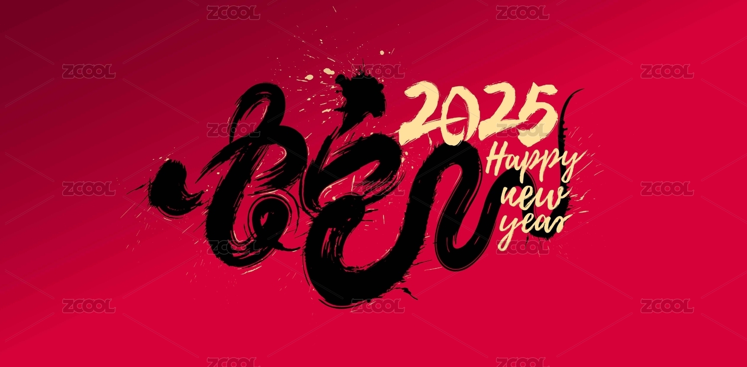蛇年,蛇,毛笔字,书法,笔触,新年,2025年,2025,插画,春节