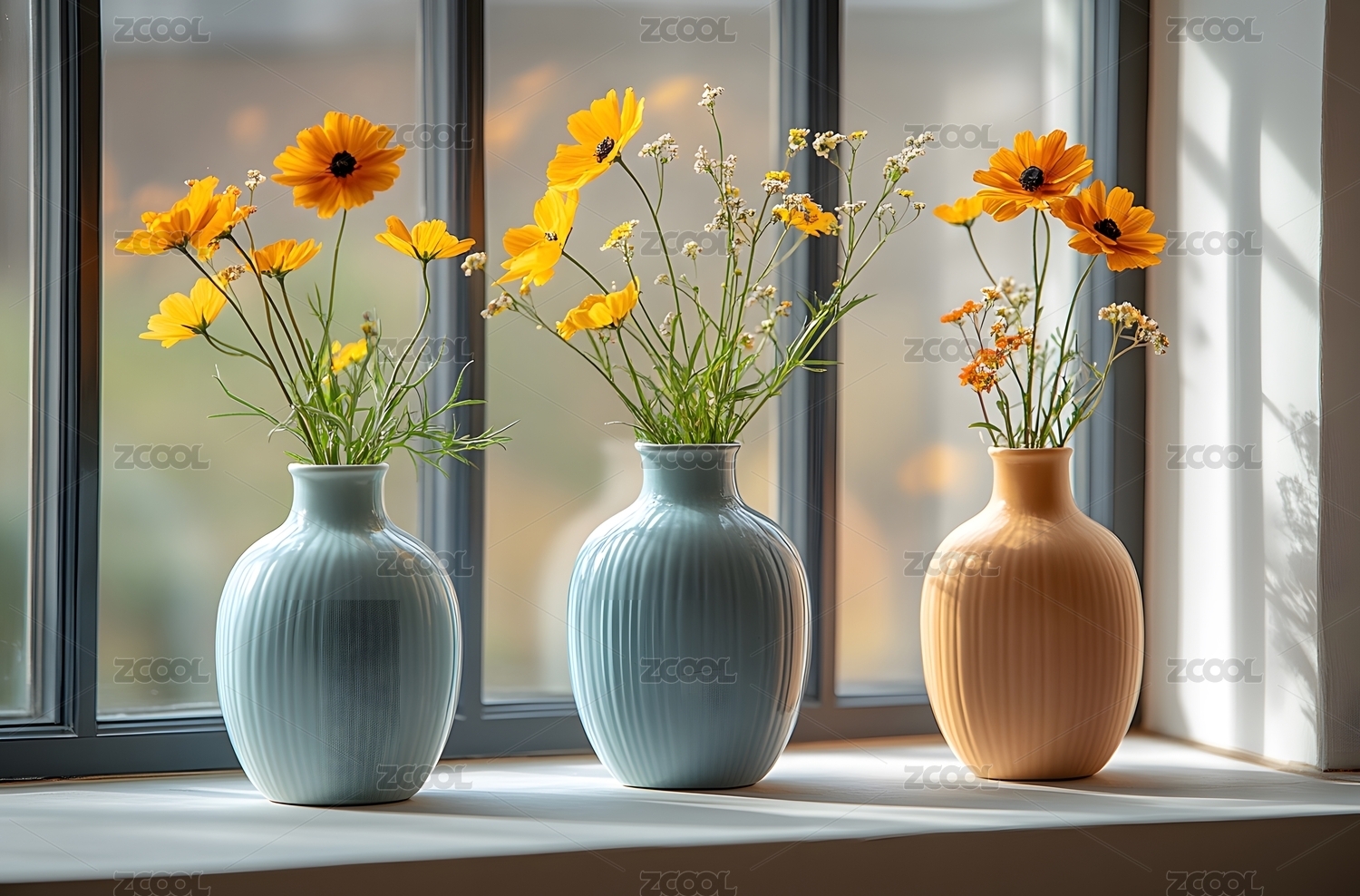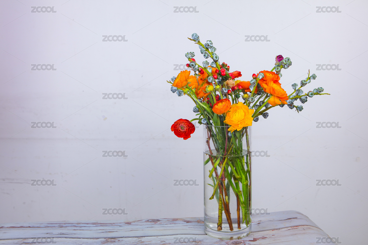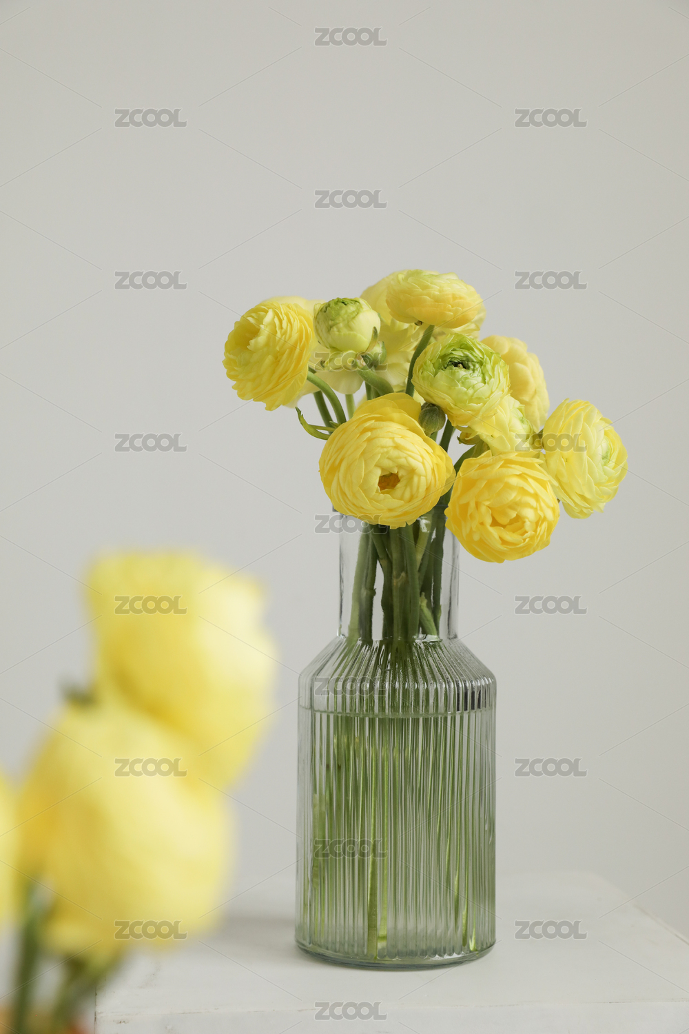 在室内,白色桌子上摆放着的鲜花装饰洋牡丹