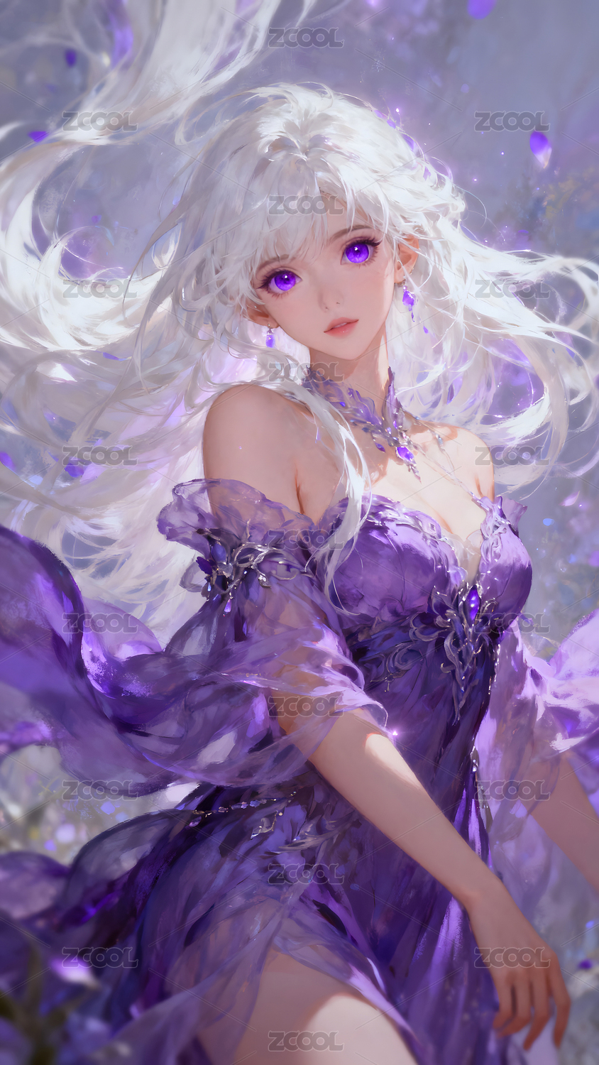 AI数字艺术,少女,梦幻,优雅,白色,白裙,金饰,银发,华丽,精致