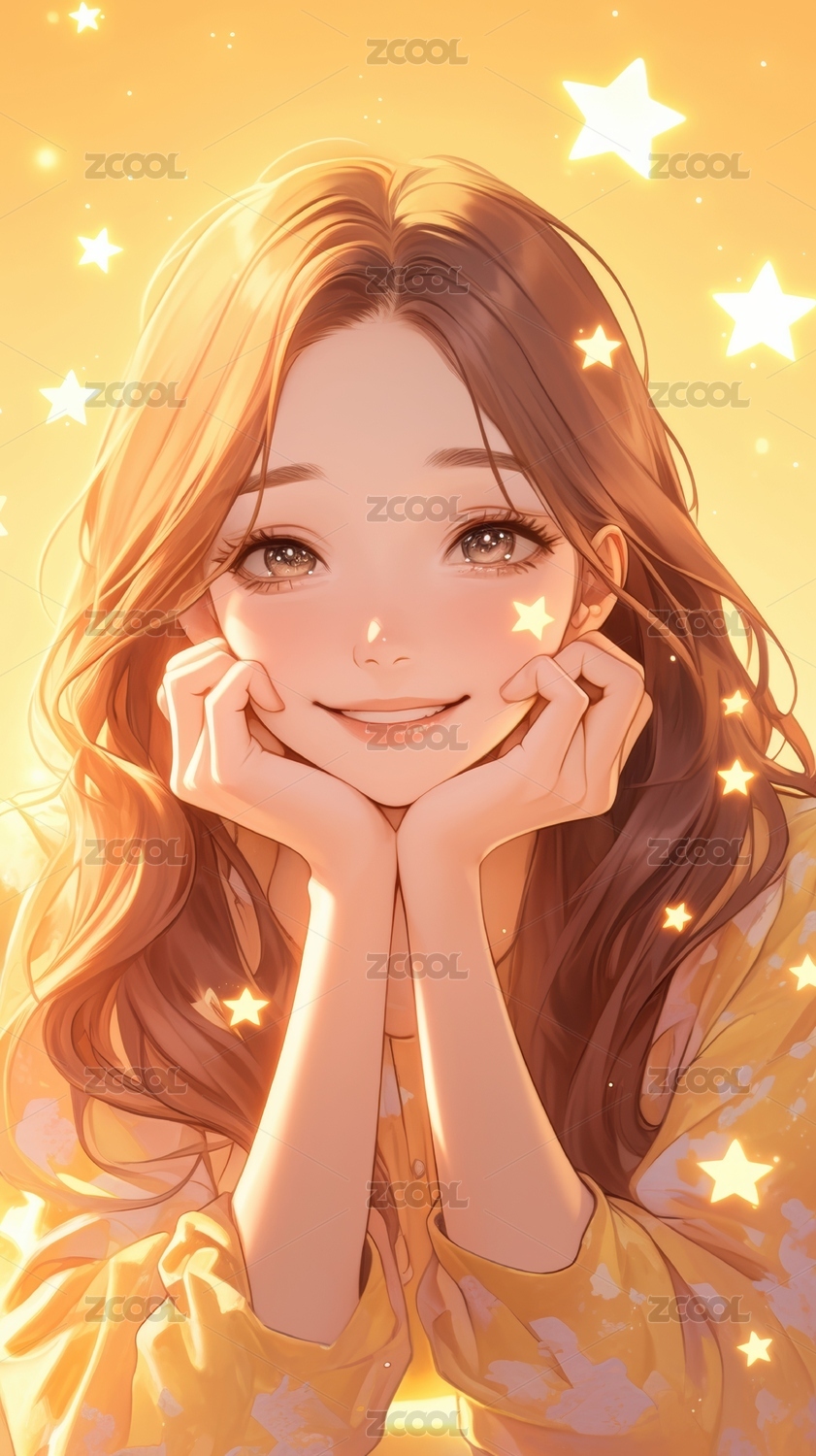 金色星光下的微笑女孩