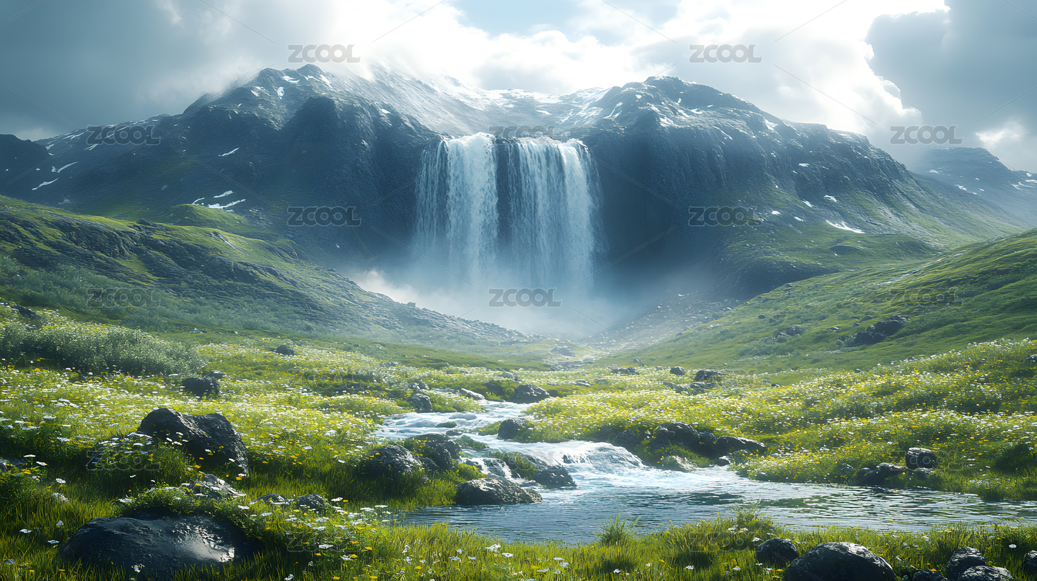 瀑布,自然,岩石,河流,天空,云,绿色,高山,景观,山水