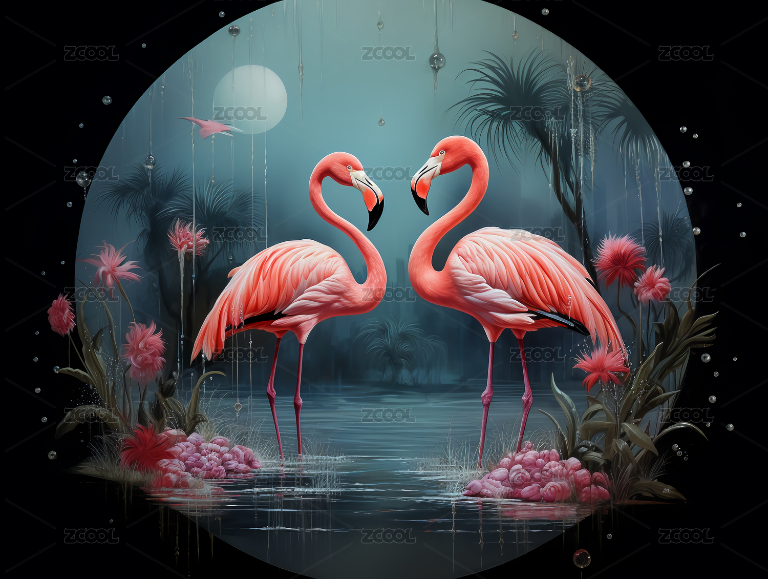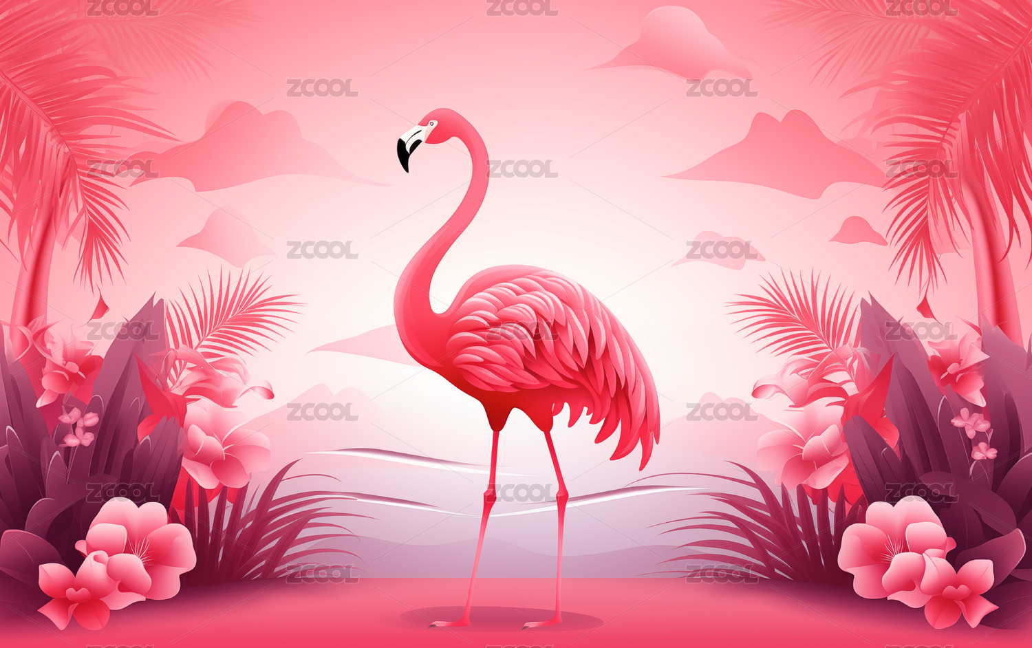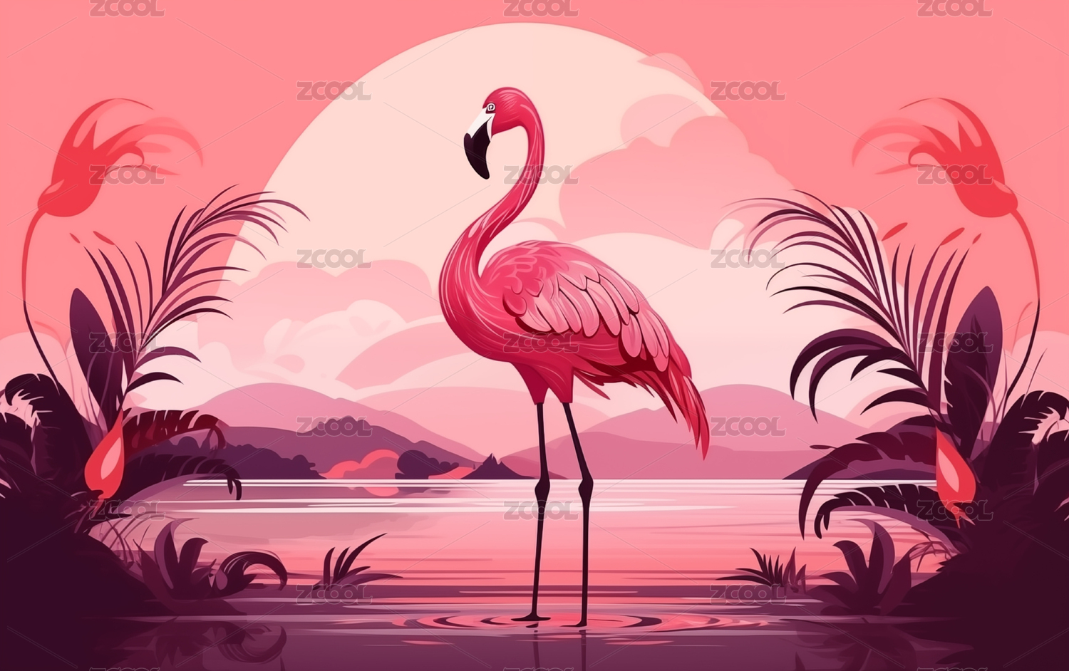 炫彩潮流复古风格粉色火烈鸟印花图案