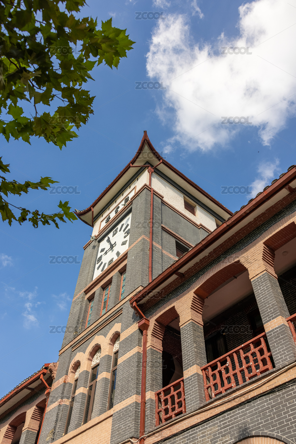 中国广东省广州市华南农业大学校园中的历史建筑屋顶