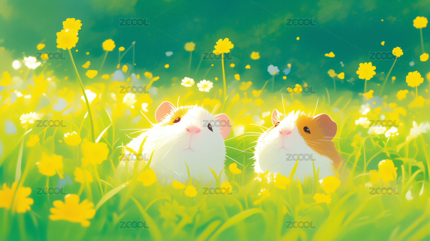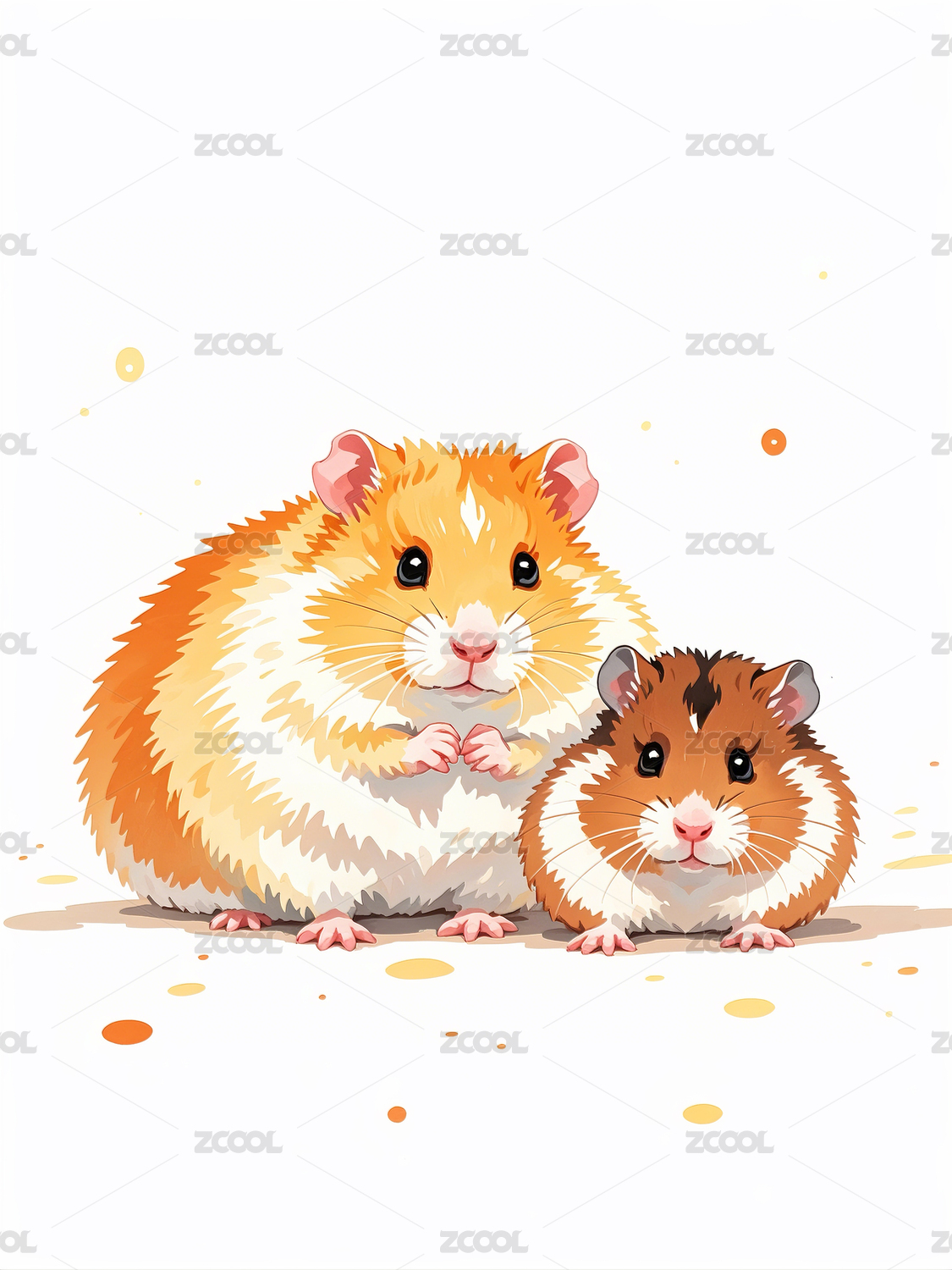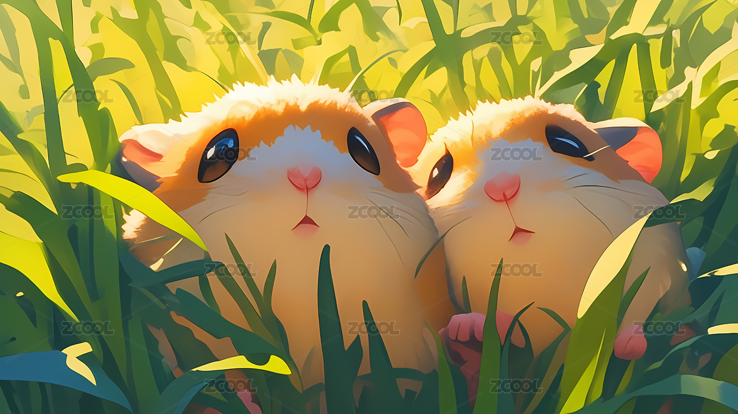 草丛中的两只可爱仓鼠插画