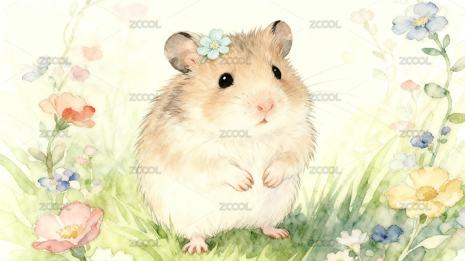 梦幻可爱小仓鼠工笔水彩画
