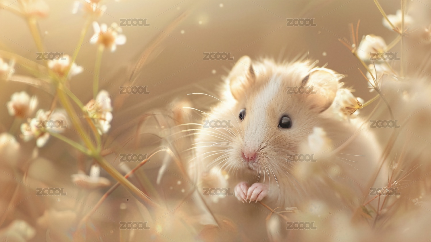花丛中玩耍的写实风格仓鼠
