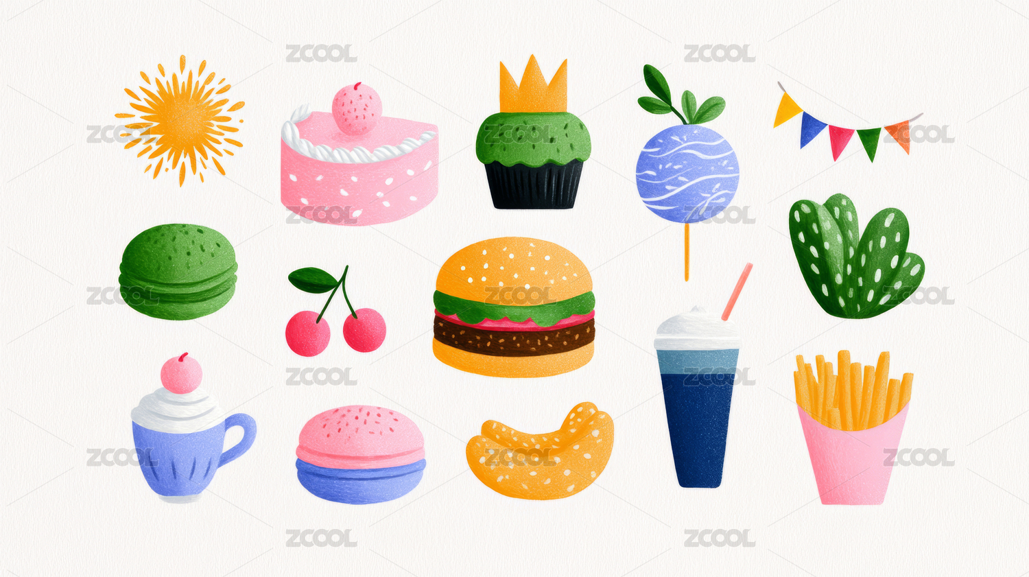 夏季五彩缤纷冰淇淋雪糕西瓜矢量插画元素