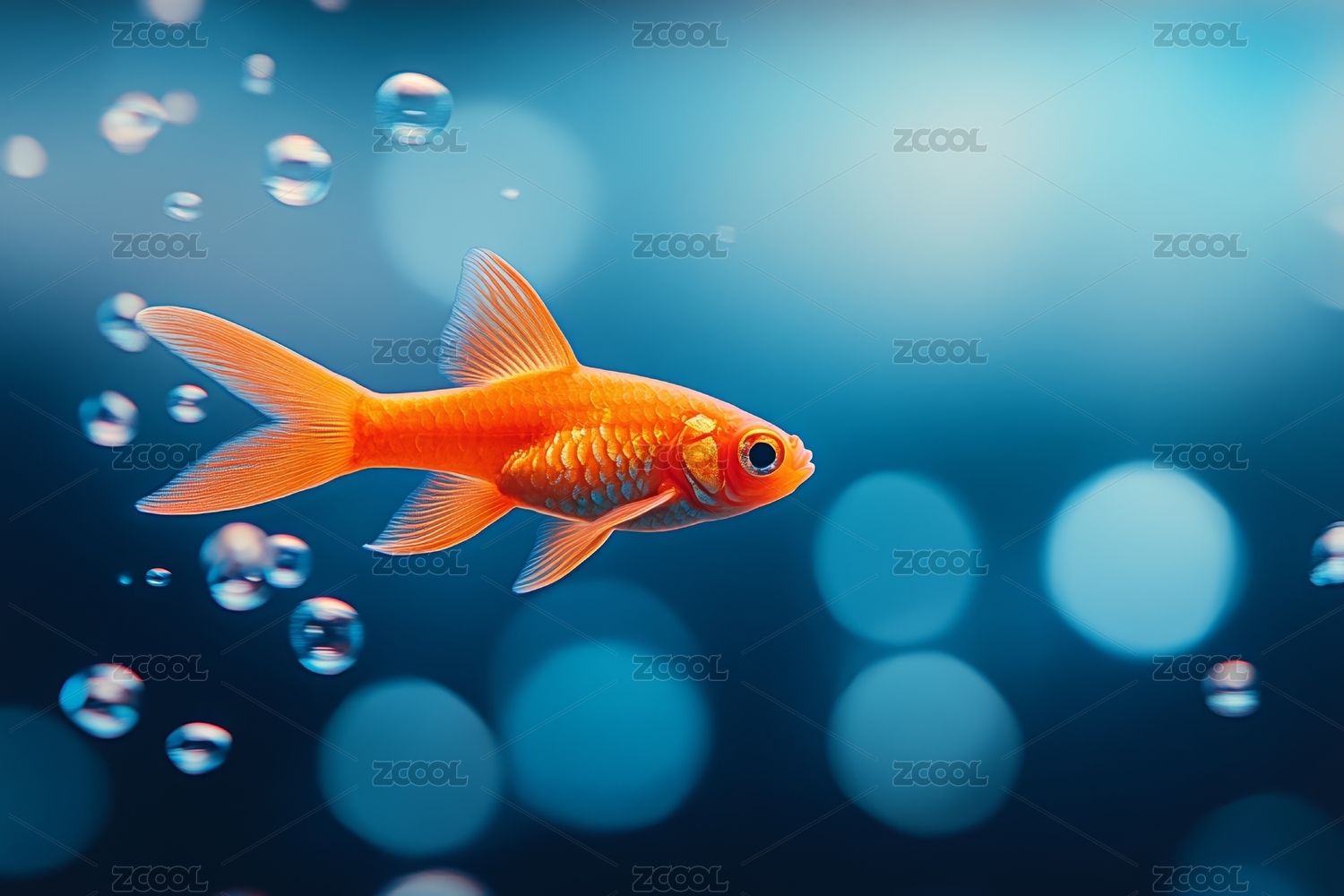 彩色梦幻光斑背景透明水中荧光色的鱼