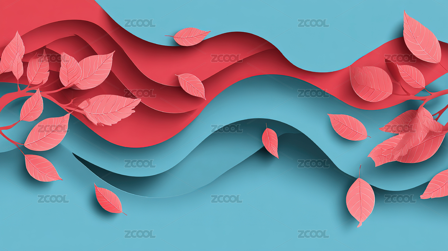 粉底纸艺树叶清新质感画面
