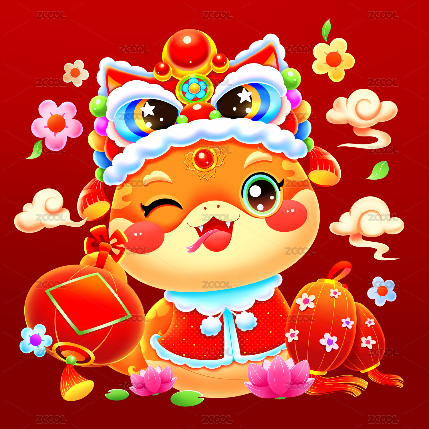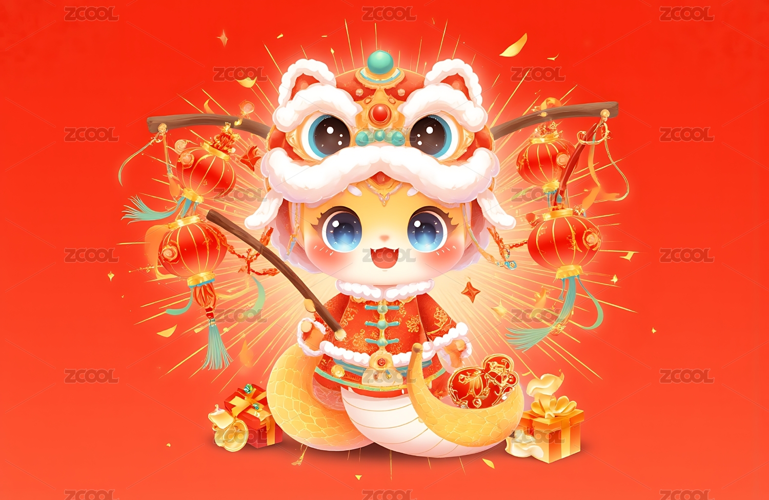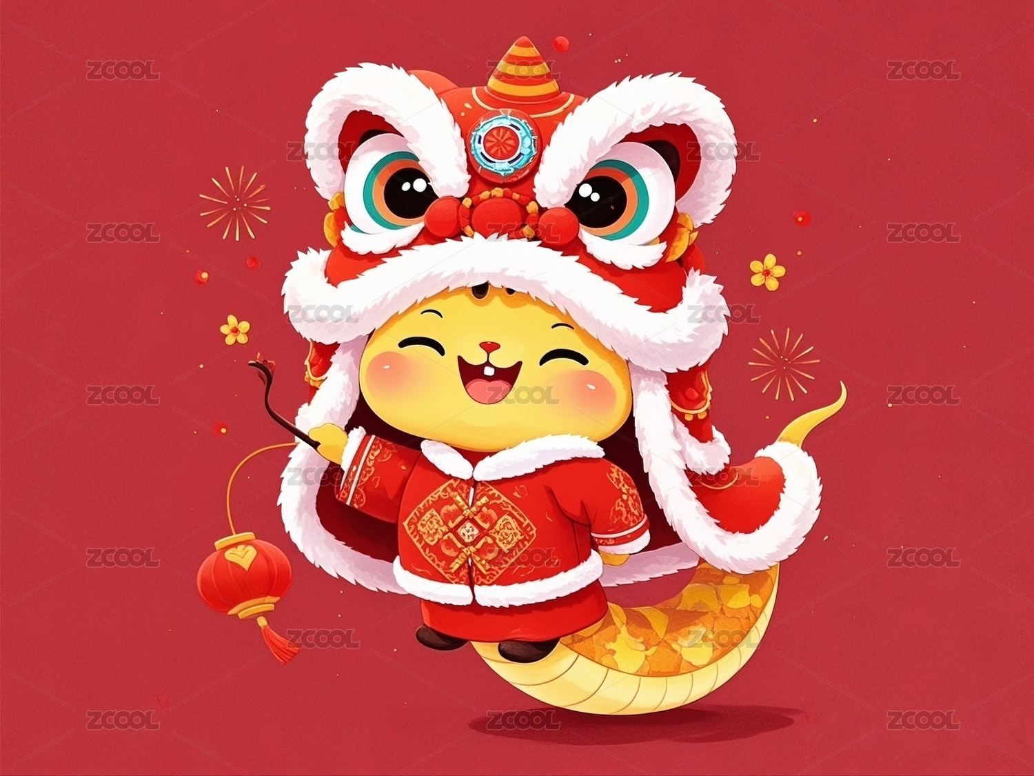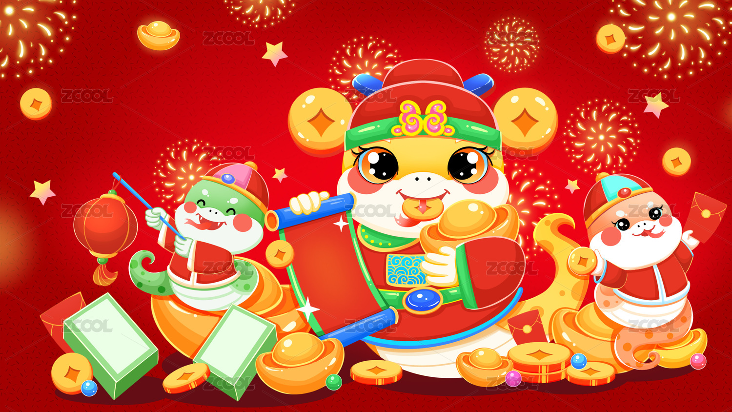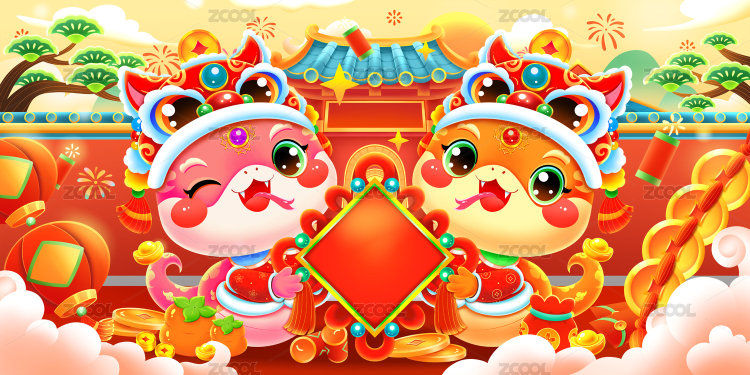 新年,春节,中国,生肖,传统文化,年画,插画,拜年,蛇年,蛇