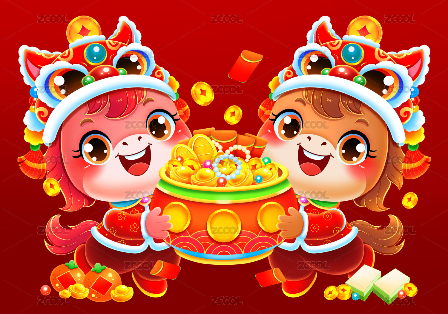 国潮春节新年蛇年传统抱聚宝盆蛇情侣