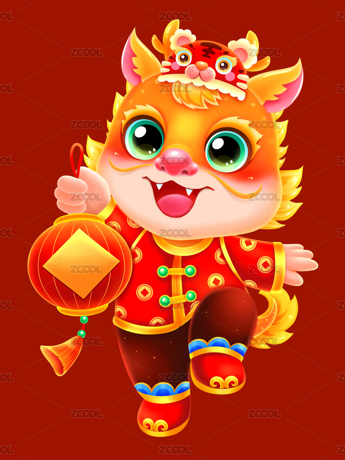 蛇年春节新年可爱卡通形象灯笼红包插画海报
