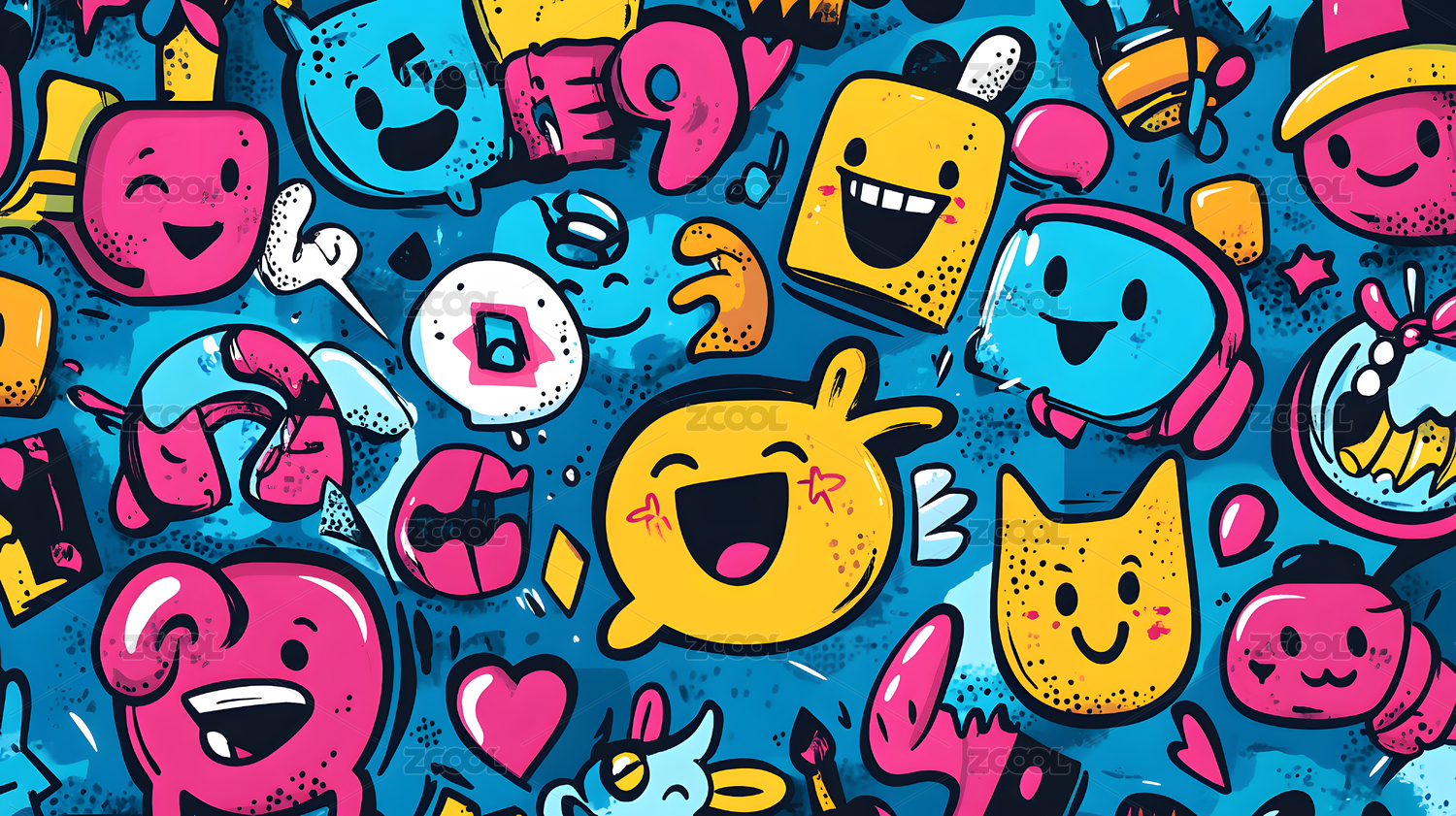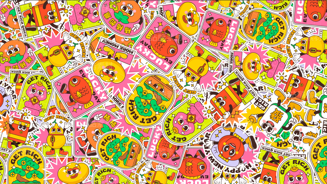 春节潮流元素矢量插画吉庆贴纸福袋红包
