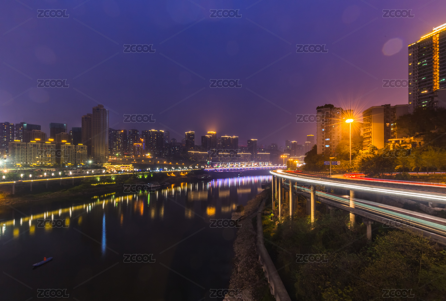 中国四川成都高新区世纪峰景与五岔子大桥的蓝调时刻