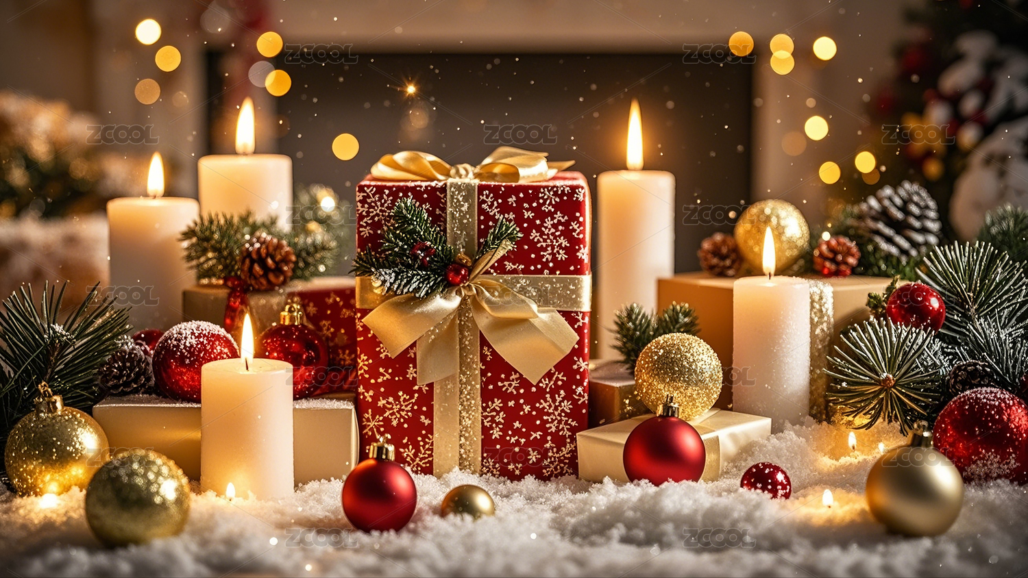 圣诞节圣诞礼物礼盒温馨氛围插画