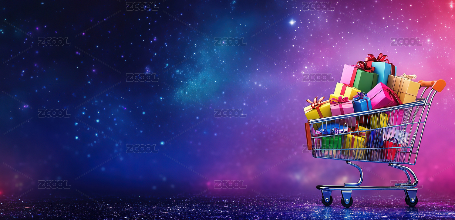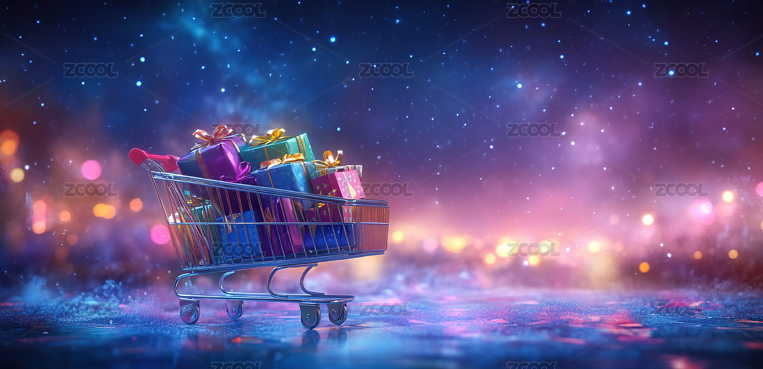 购物车,炫彩背景,礼物,3D,现代光效,节日