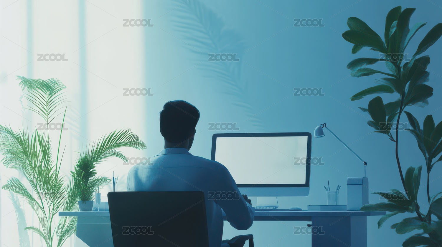 办公桌前专注工作的人背影