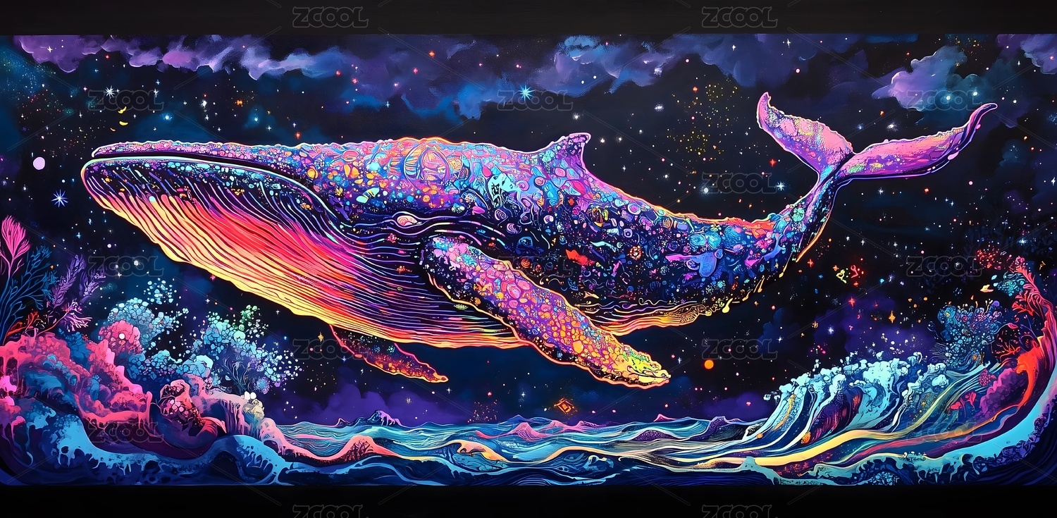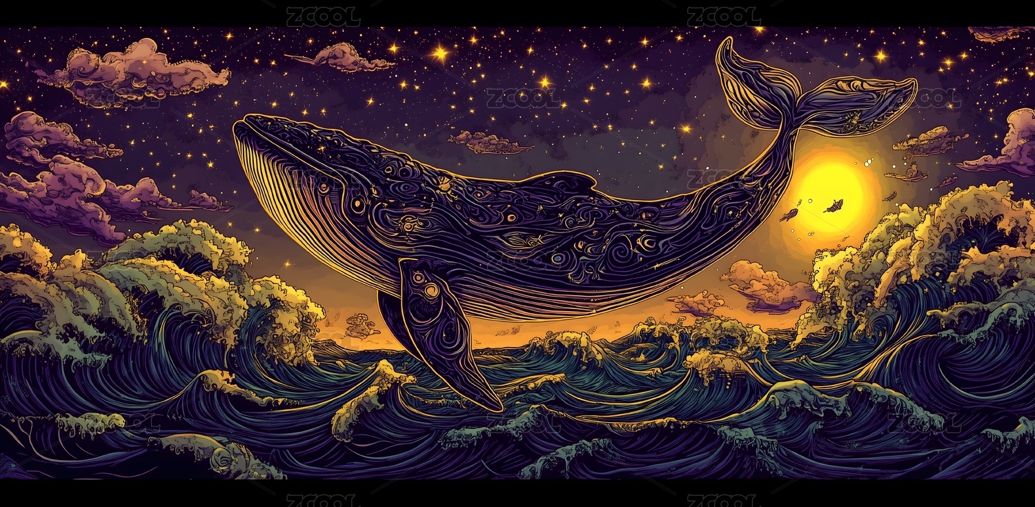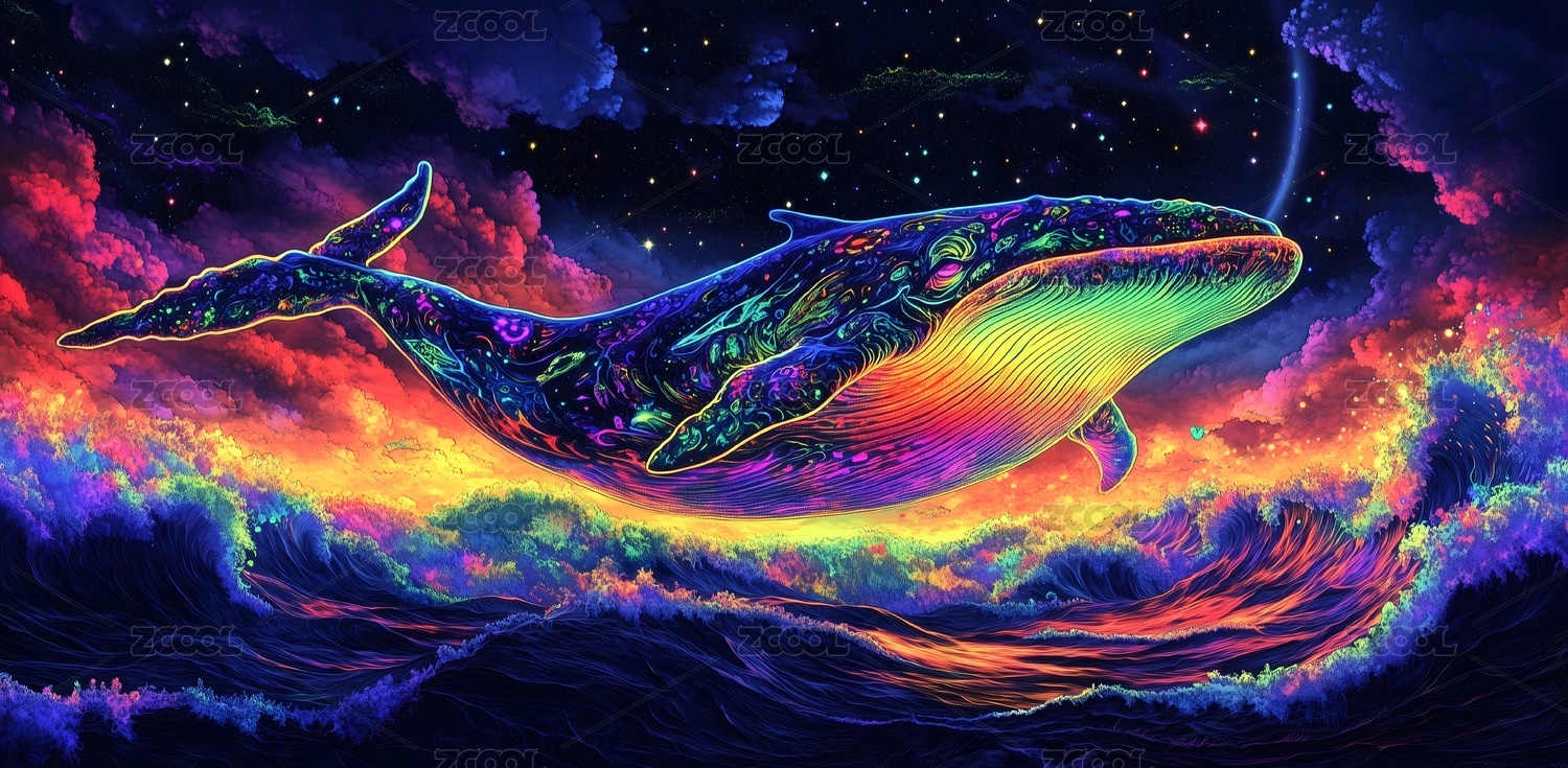 鲸鱼,现代,光效,插画,背景,海报,封面,包装,广告